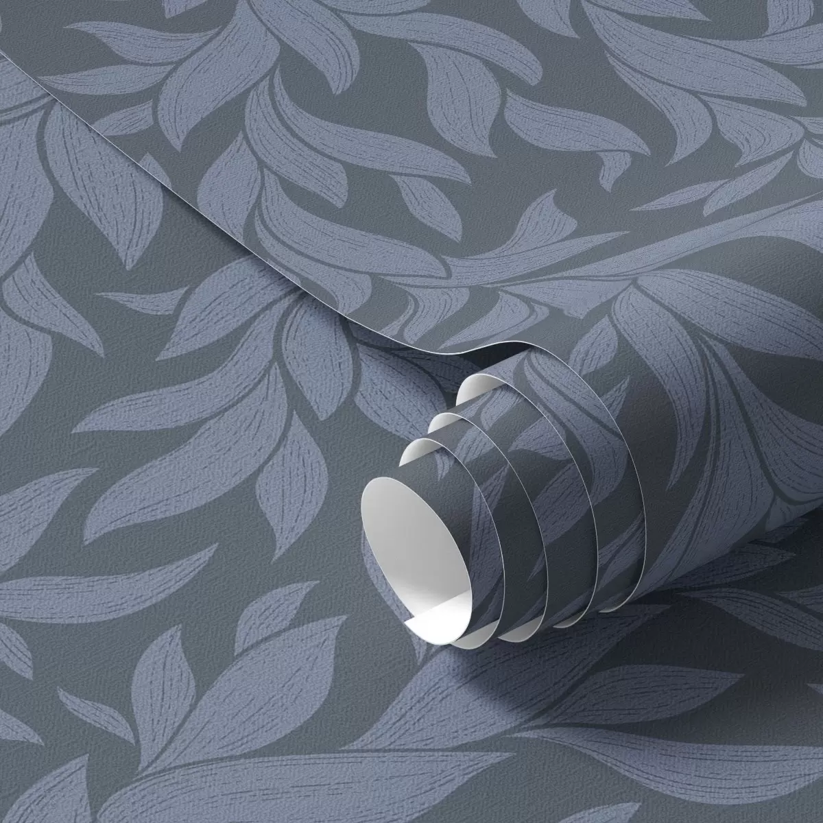 Behang Grafietblauwe achtergrond en blauwe bladeren, gestructureerde streep Nr. a00616v2