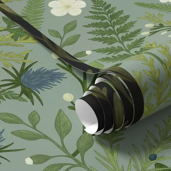 Behang Bos kruiden, cichorei en bessen op een munt achtergrond Nr. a00621v1