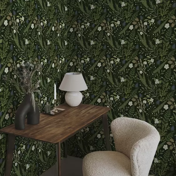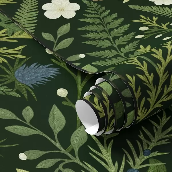 Behang Boskruiden en bessen op een donkergroene achtergrond Nr. a00621v2