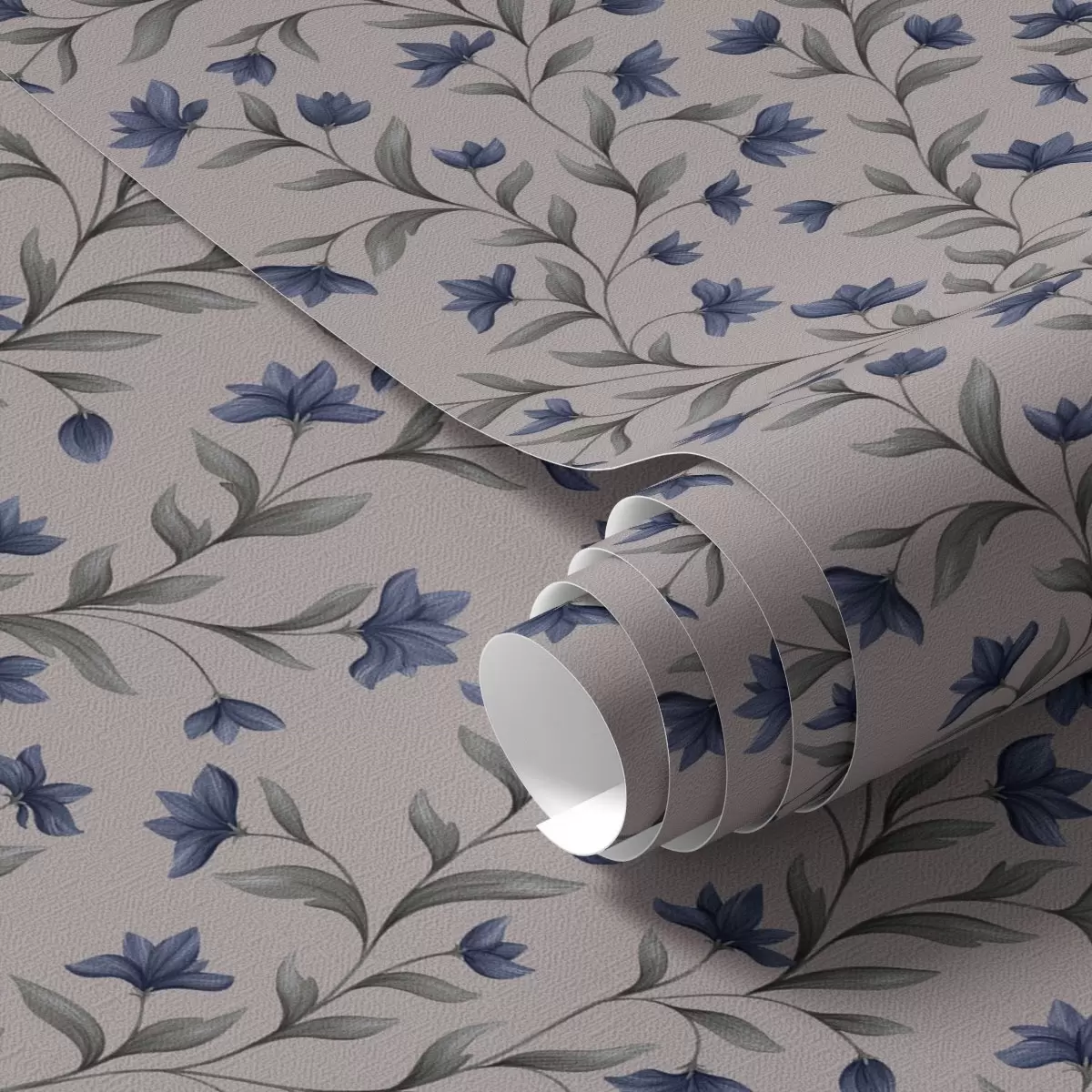 Behang Blauwe klokjes op een poederroze achtergrond Nr. a00622v2