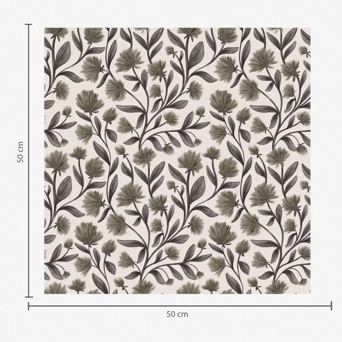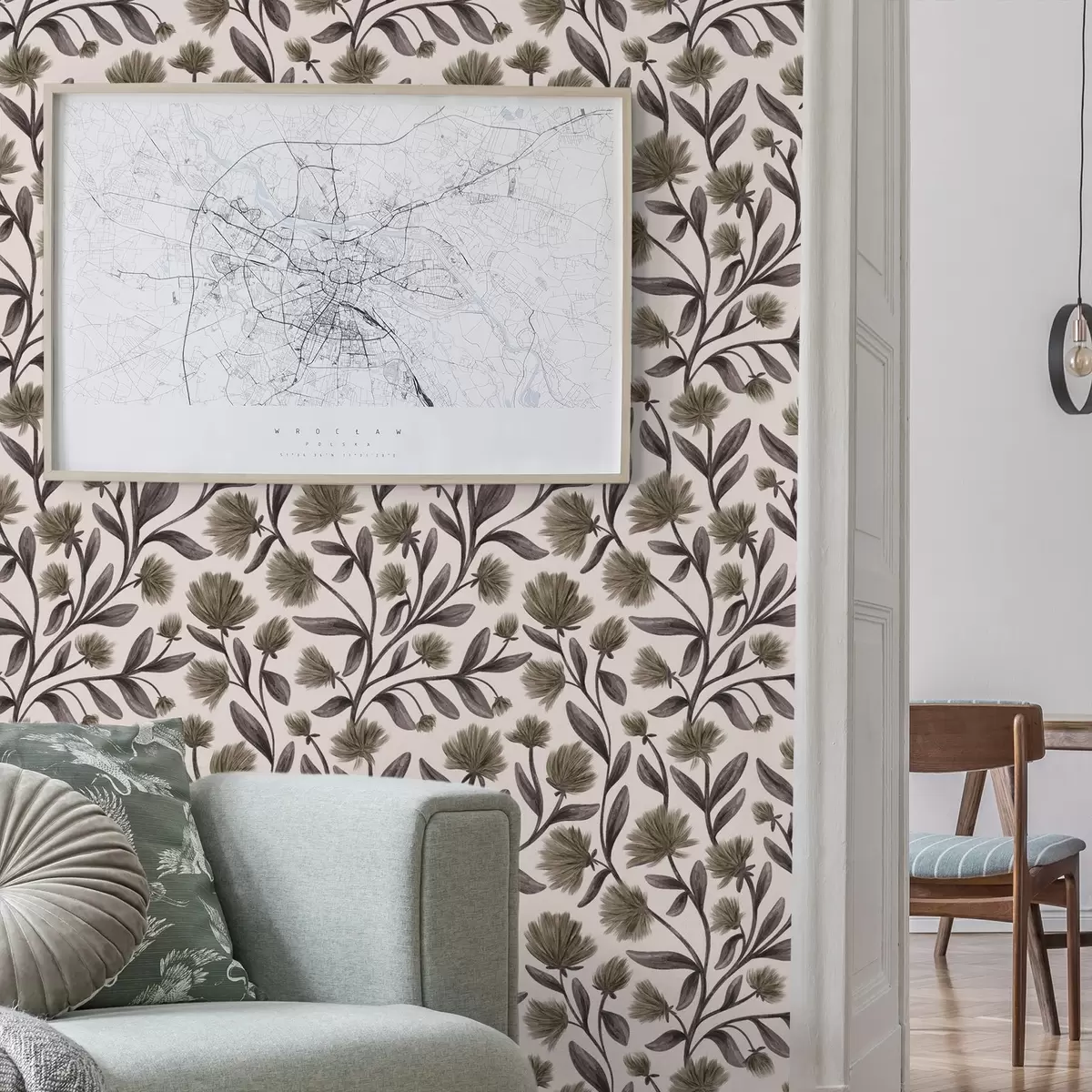 Behang Wilde bloemen in grijs-olijfkleurige tinten op een crèmekleurige achtergrond Nr. a00623v1