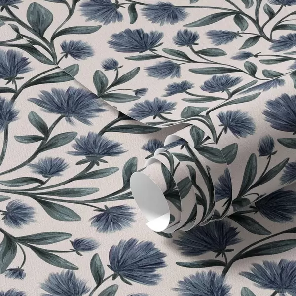 Behang Wilde bloemen in een blauwgroen palet op een crèmekleurige achtergrond Nr. a00623v2