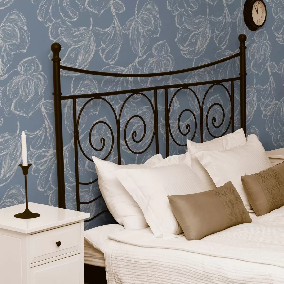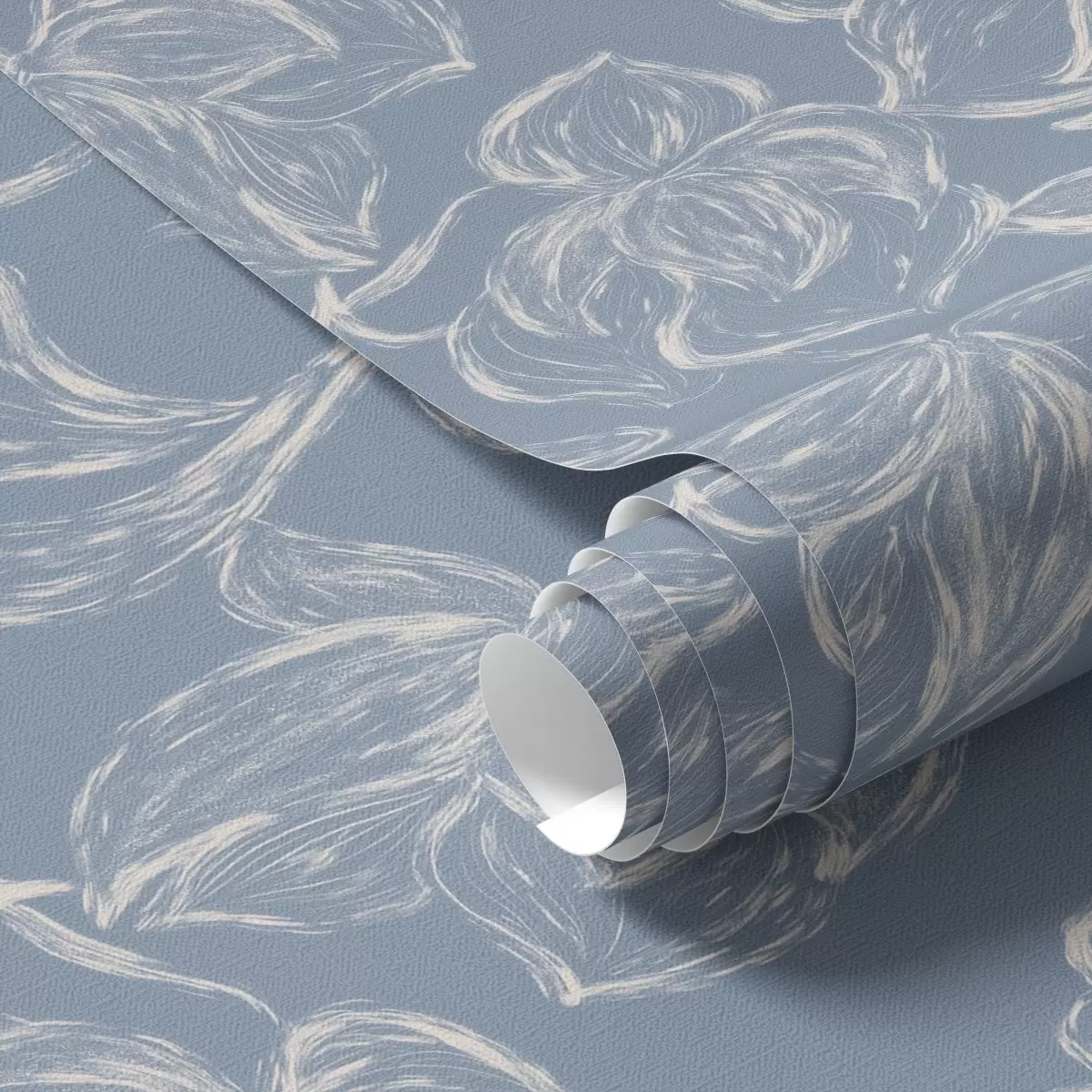 Behang Lichtblauwe achtergrond met krijtachtige bloemen Nr. a00625v3