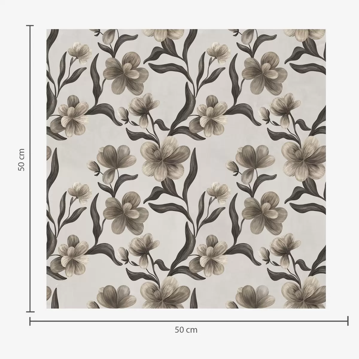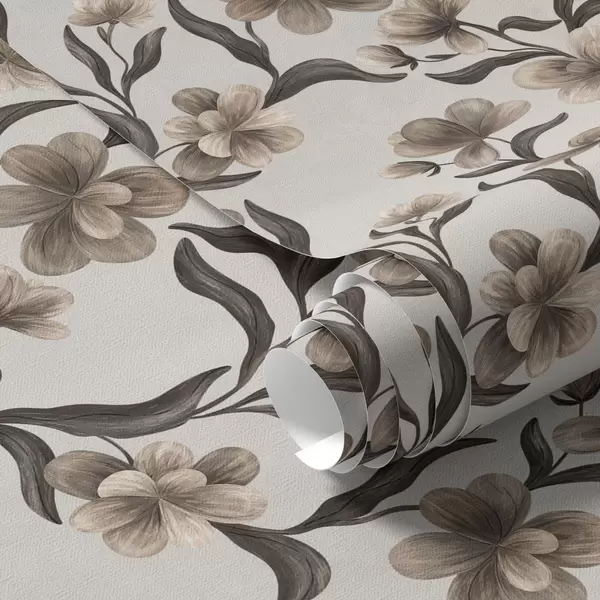 Behang Beige bloemen en donkere takken op een lichtgrijze achtergrond Nr. a00626v1