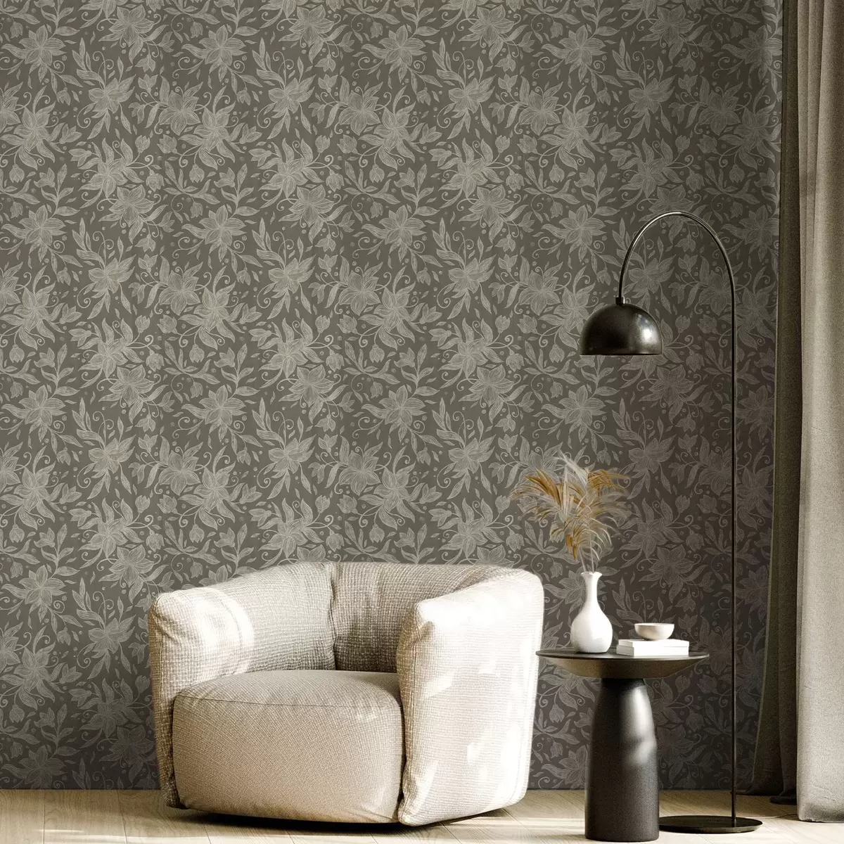 Behang Lichte lineaire bloemen, decoratieve krullen Nr. a00630v1