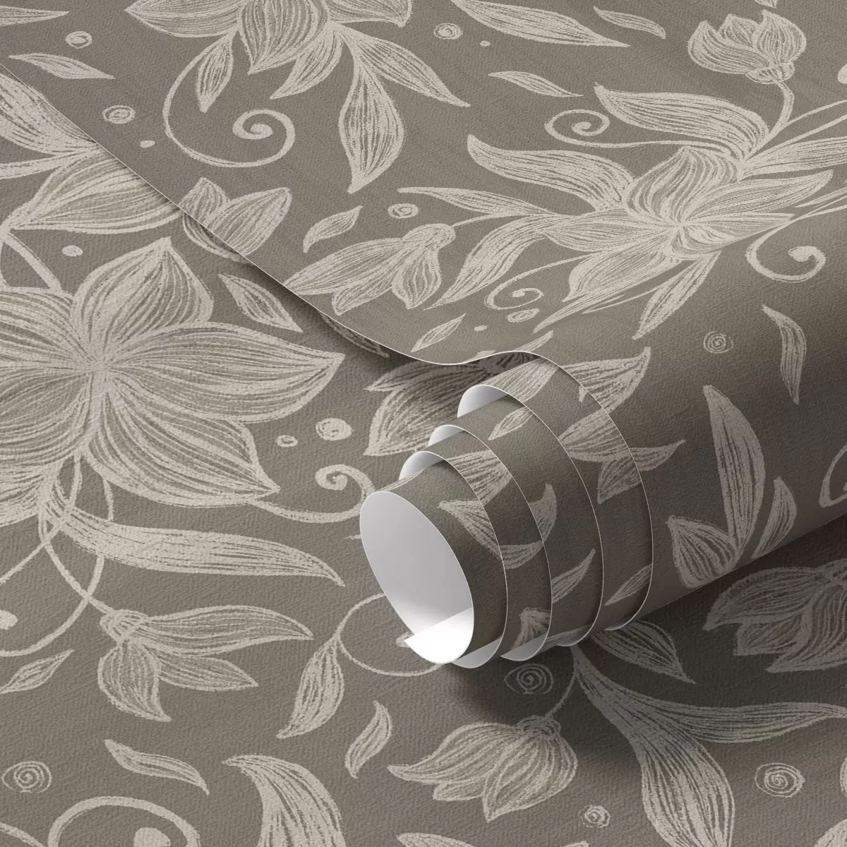 Behang Lichte lineaire bloemen, decoratieve krullen Nr. a00630v1