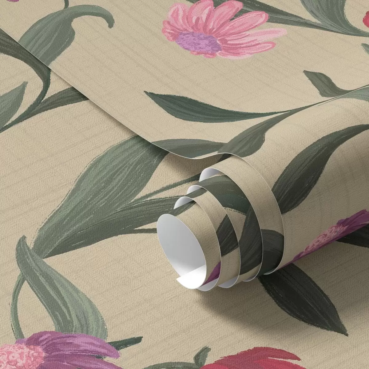 Behang Rozerode bloemen op een beige achtergrond, handgetekende textuur Nr. a00631