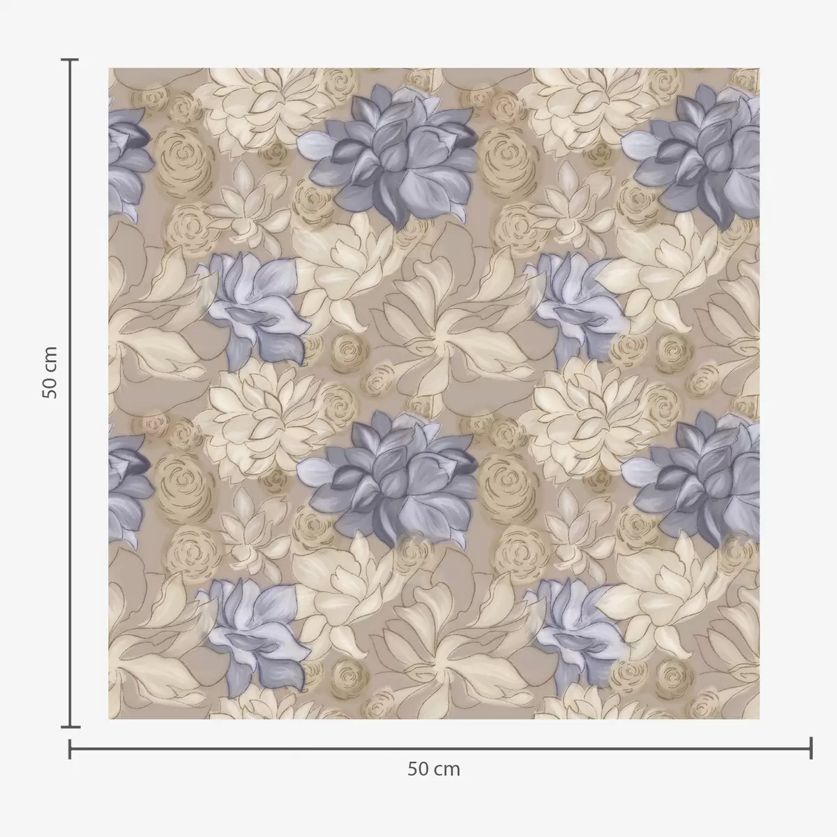 Behang Crèmekleurige en blauwe bloemen op een warme beige achtergrond Nr. a00634v1