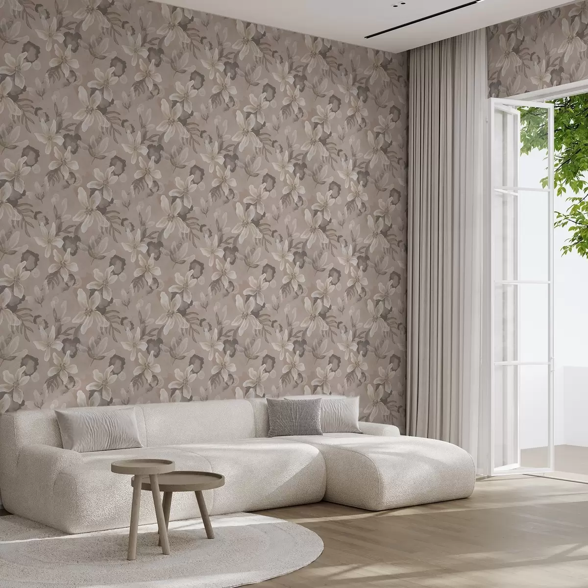 Behang Grote beige bloemen met abstracte waterverfvlekken Nr. a00635