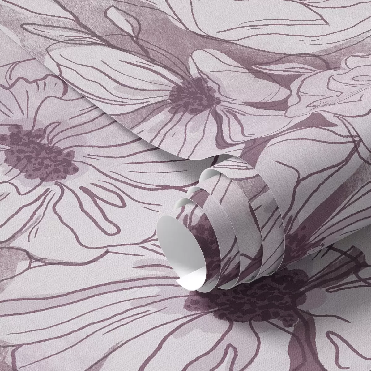 Behang Lineaire bloemen in een koel lila-roze kleurenpalet Nr. a00636v1