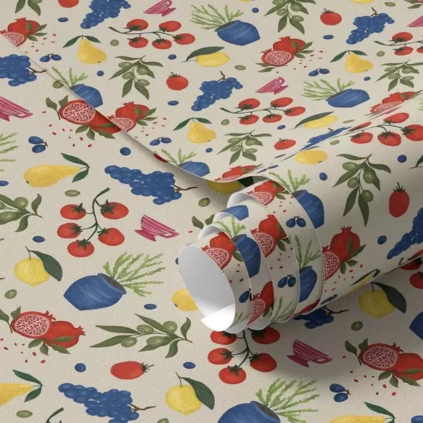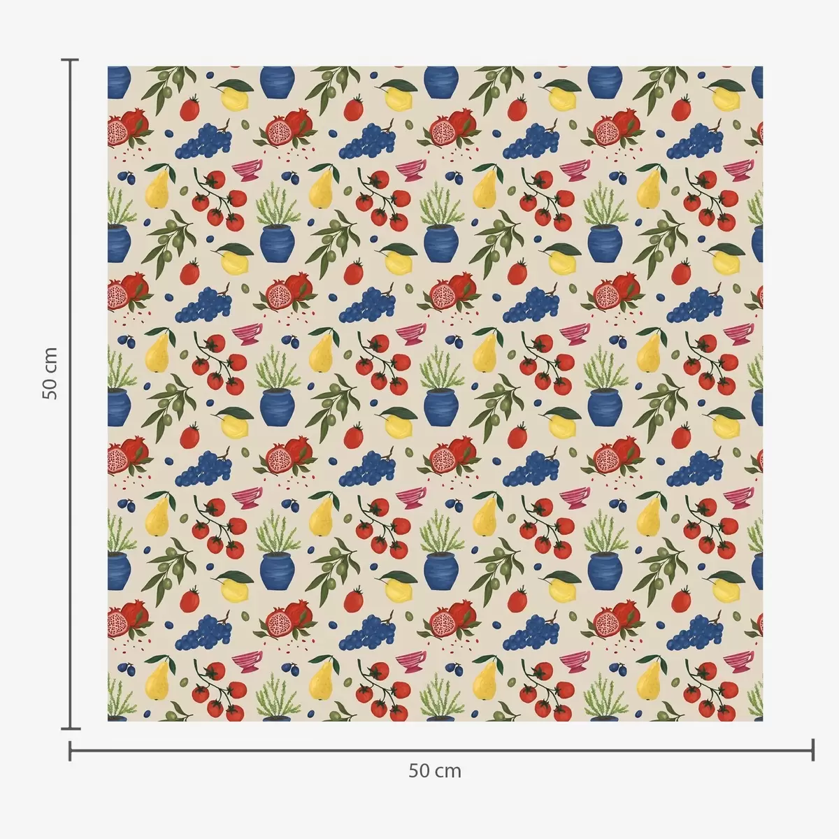 Behang Levendig patroon met fruit, takken en vazen Nr. a00637