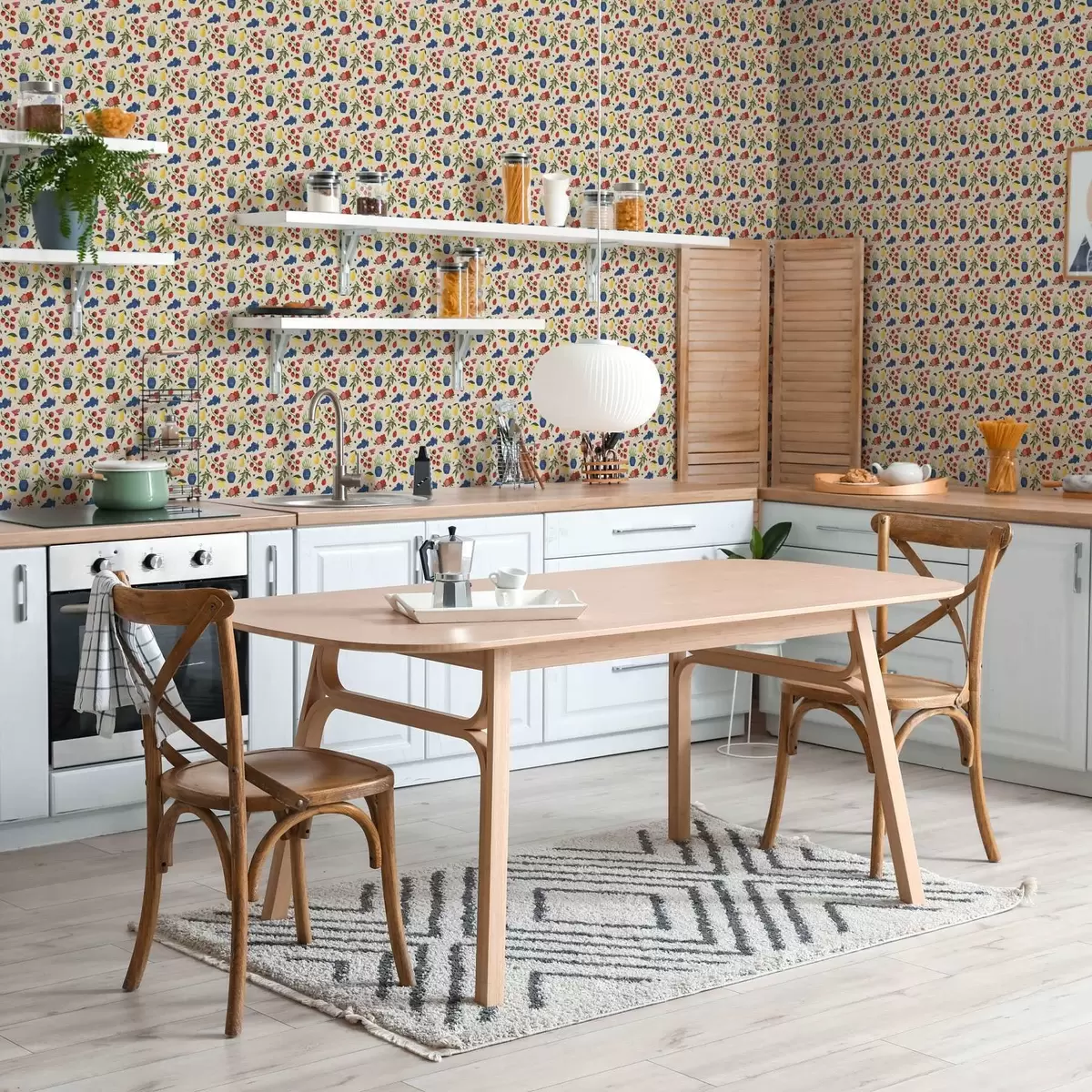 Behang Levendig patroon met fruit, takken en vazen a00637