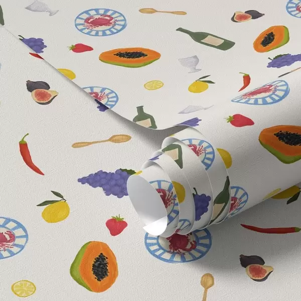 Behang Fruit, wijn en kruiden op een lichte achtergrond Nr. a00639