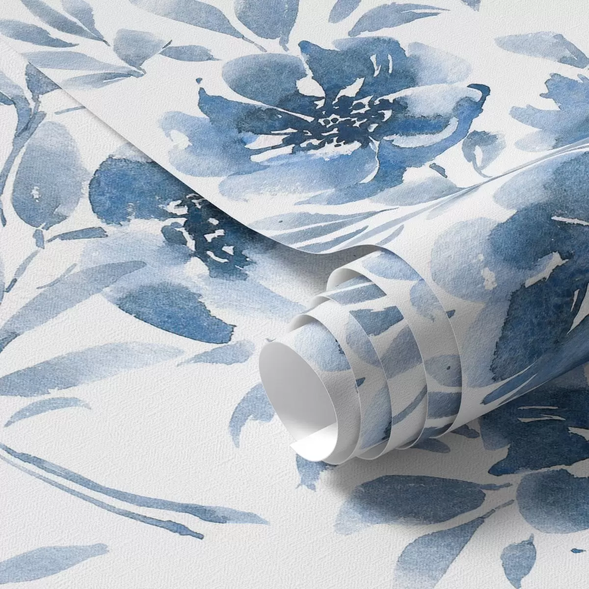 Behang Aquarel indigo pioenrozen op een witte achtergrond Nr. a00641