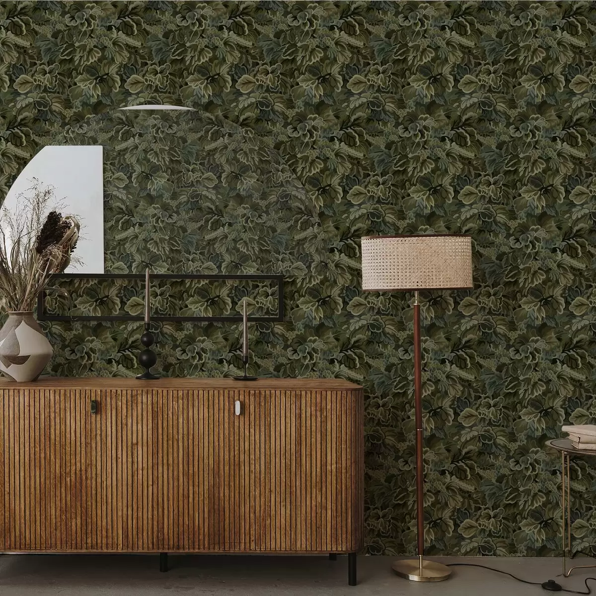 Behang Dichte druivenbladeren in een diepgroen palet Nr. a00647