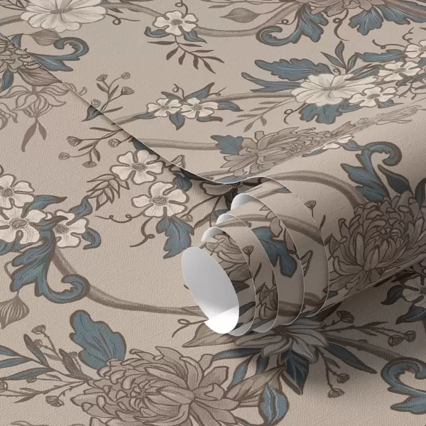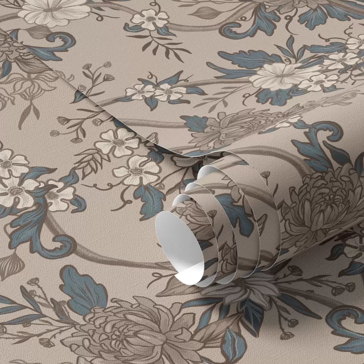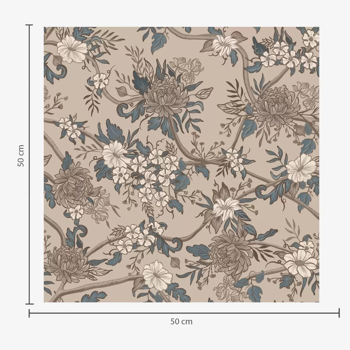 Behang Grote bloemen met bladeren met patronen op een warme beige achtergrond Nr. a00649