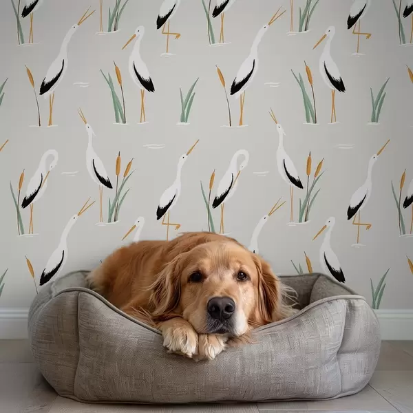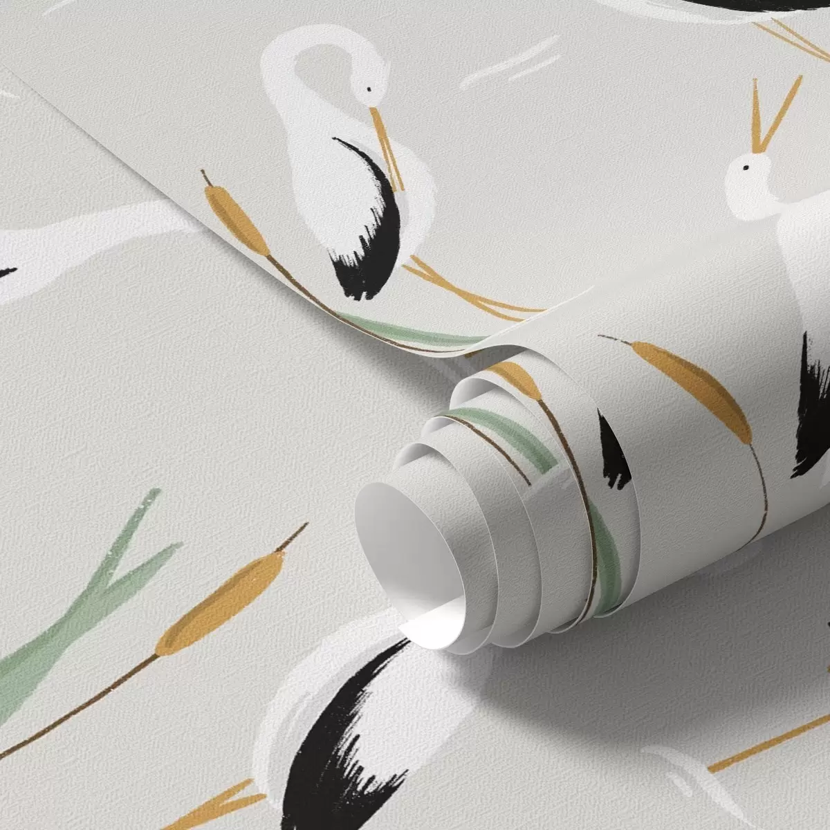 Behang Reigers tussen riet op een lichtgrijze achtergrond Nr. a00650