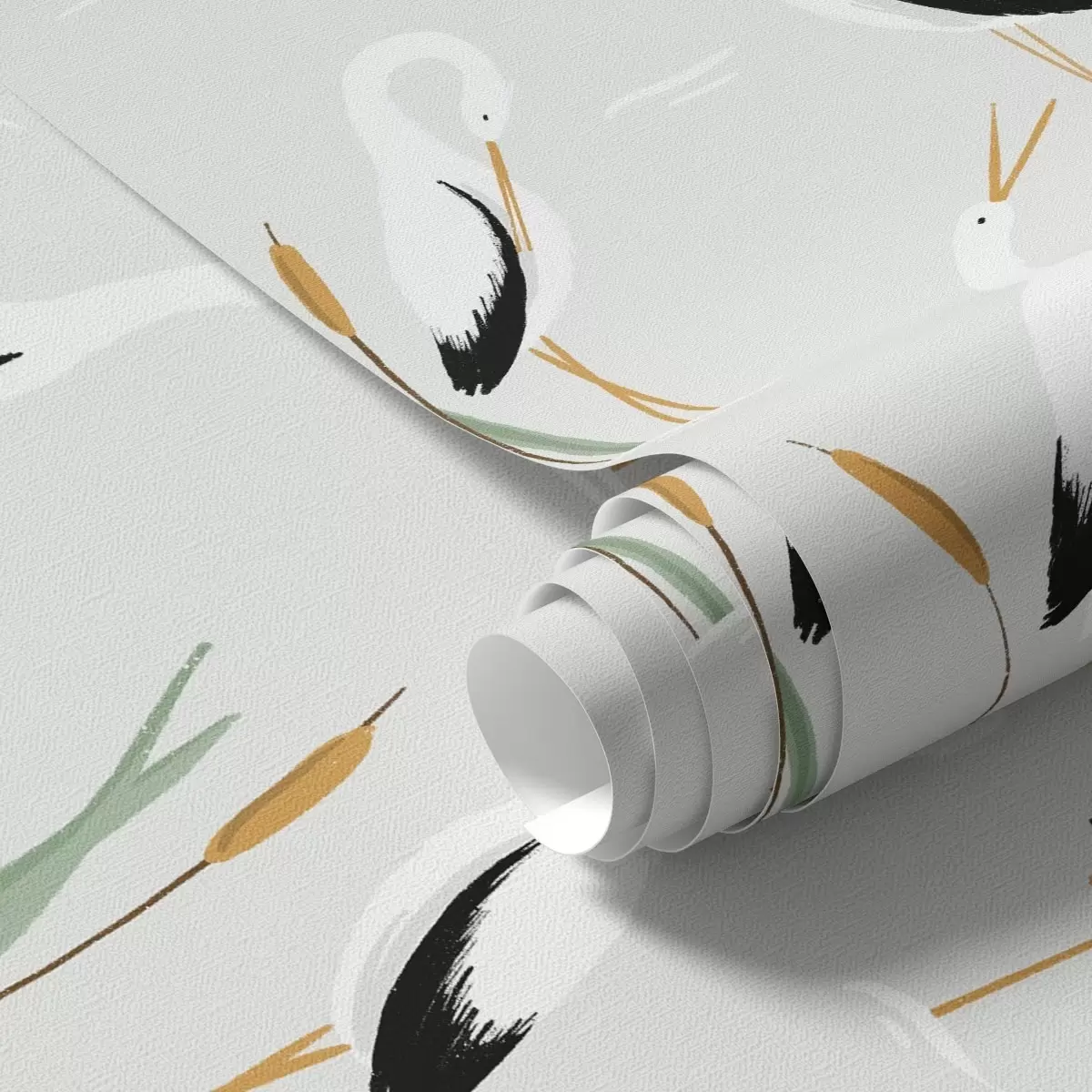 Behang Reigers tussen riet op een lichte achtergrond Nr. a00650v2
