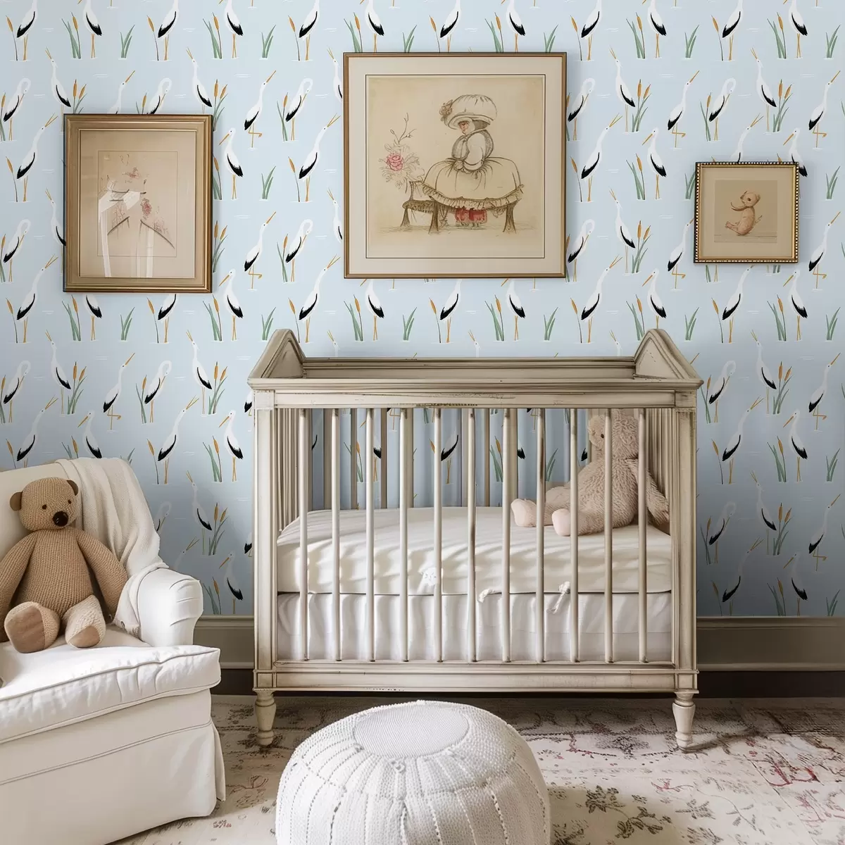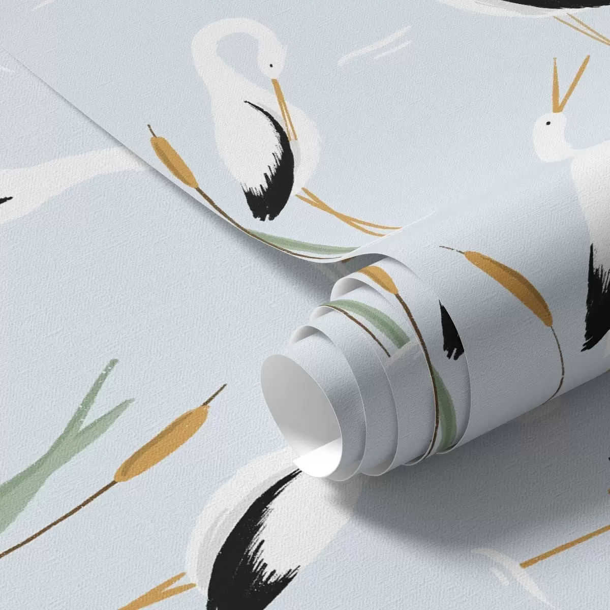 Behang Reigers tussen het riet op een zachte blauwe achtergrond Nr. a00650v3