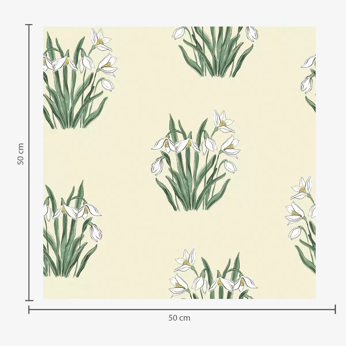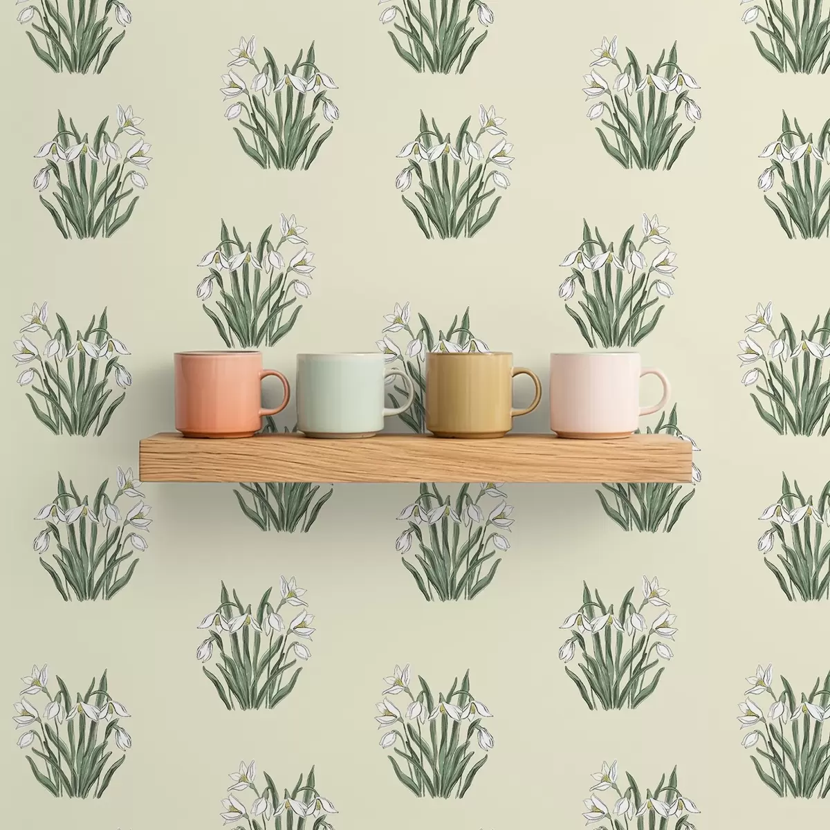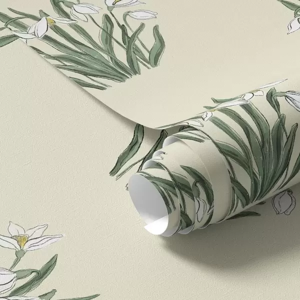 Behang Sneeuwklokjes met groene bladeren op een crèmekleurige achtergrond Nr. a00651v2