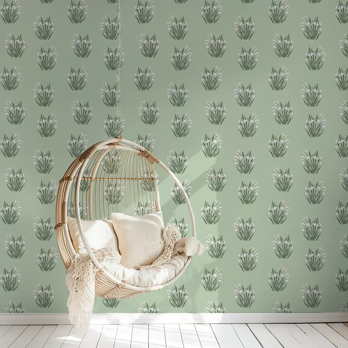 Behang Sneeuwklokjes met groene bladeren op een zachtgroene achtergrond Nr. a00651v4