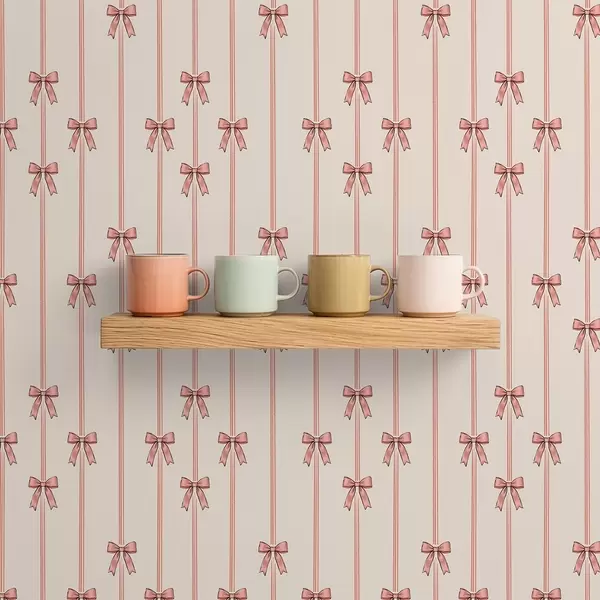 Behang Verticale linten met strikken, ivoorkleurige achtergrond Nr. a00653