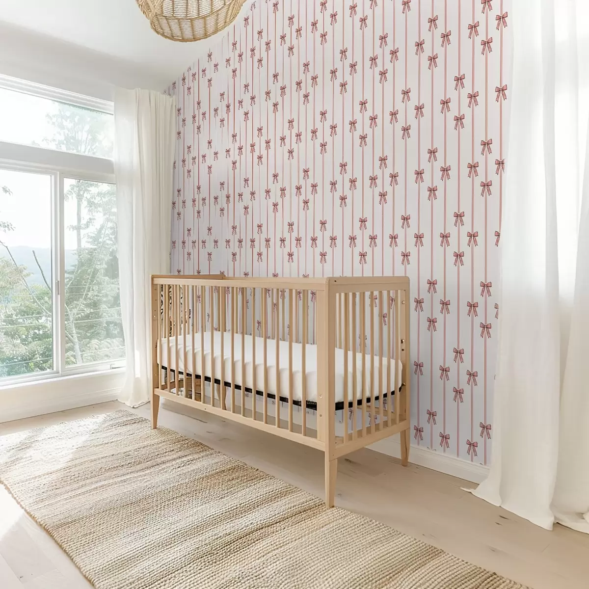 Behang Verticale linten met strikken, warm beige Nr. a00653v1
