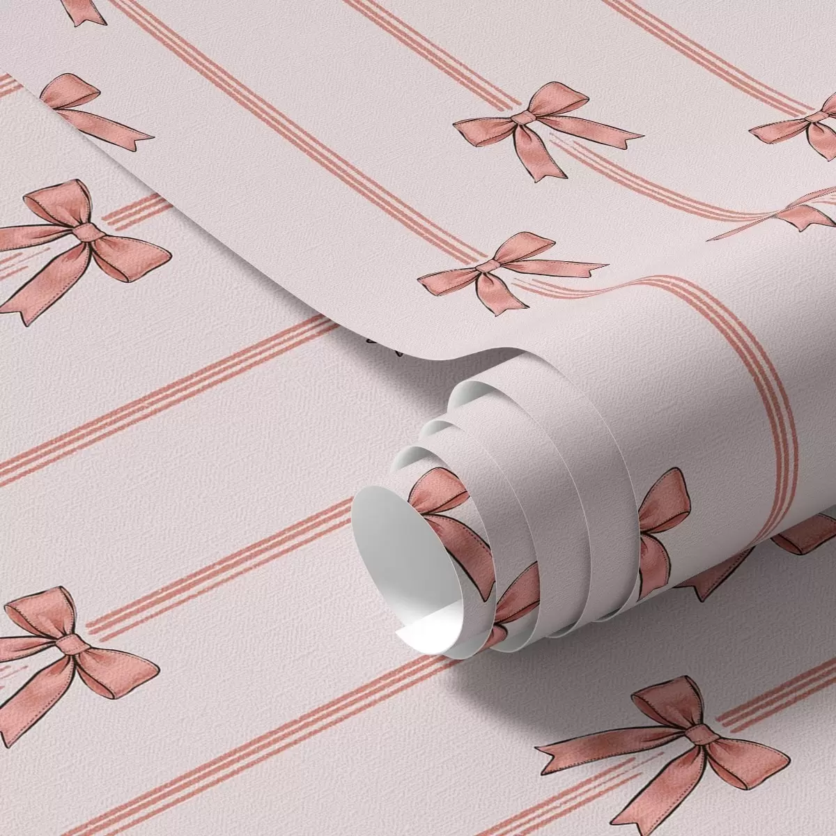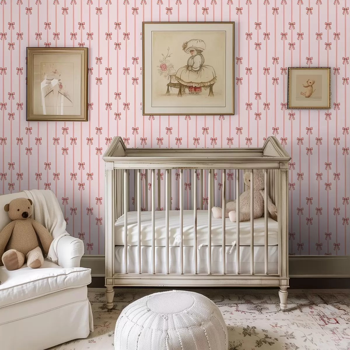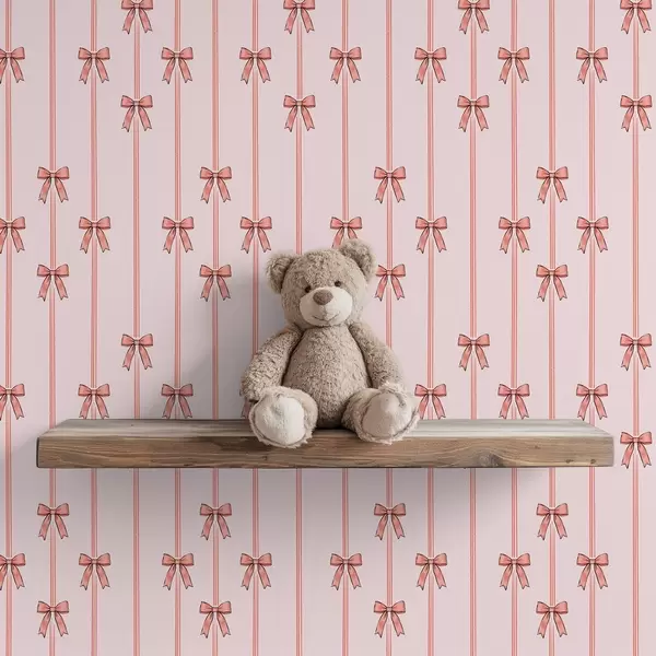 Behang Verticale linten met strikken, poederroze achtergrond Nr. a00653v2
