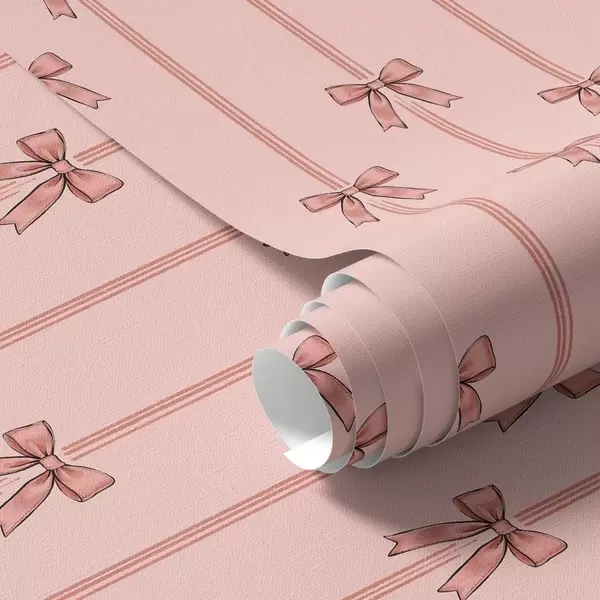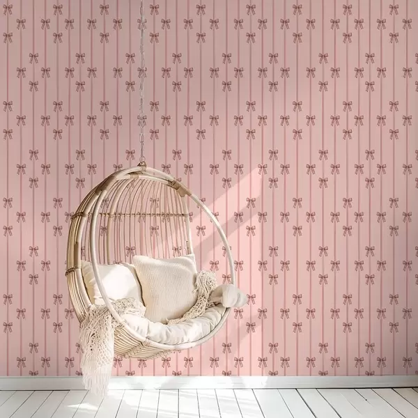 Behang Verticale linten met strikken, koraalroze achtergrond Nr. a00653v3