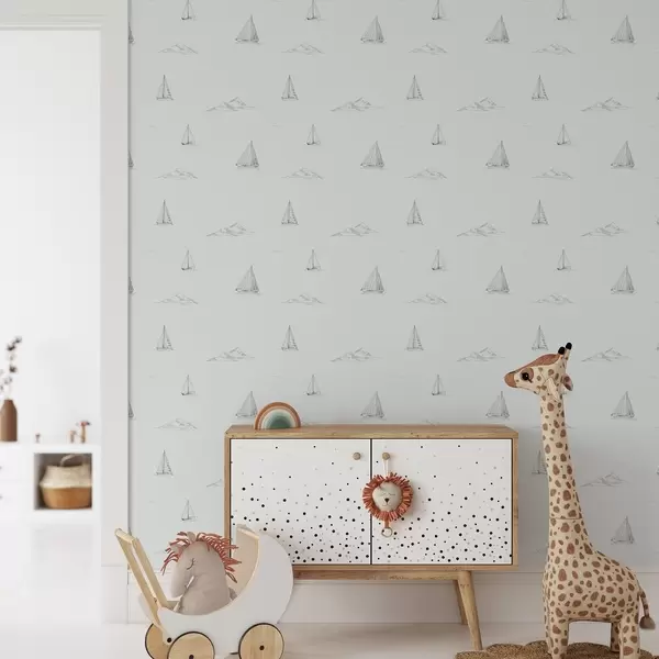Behang Schets jachten en eilanden, koele blauwgrijze achtergrond Nr. a00654