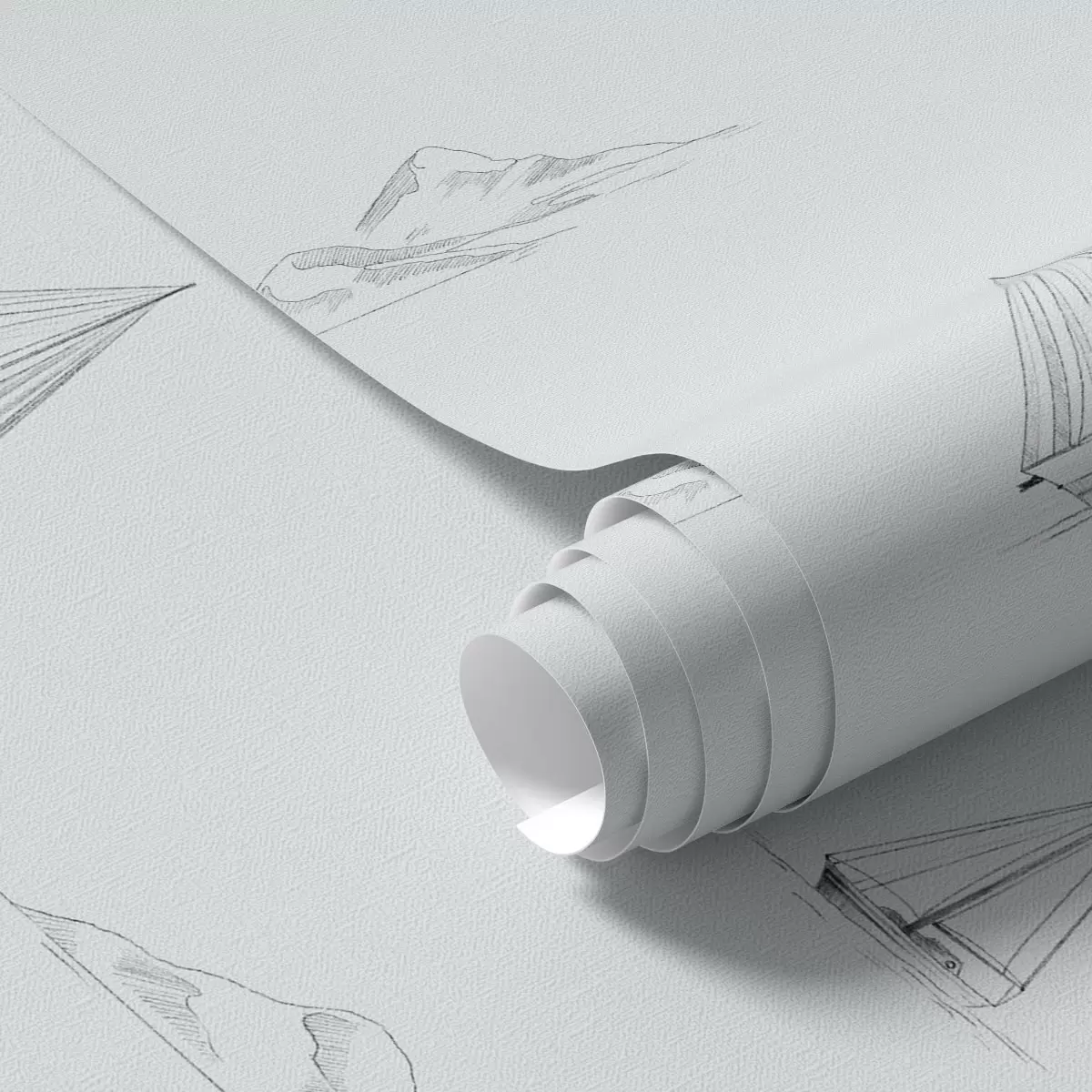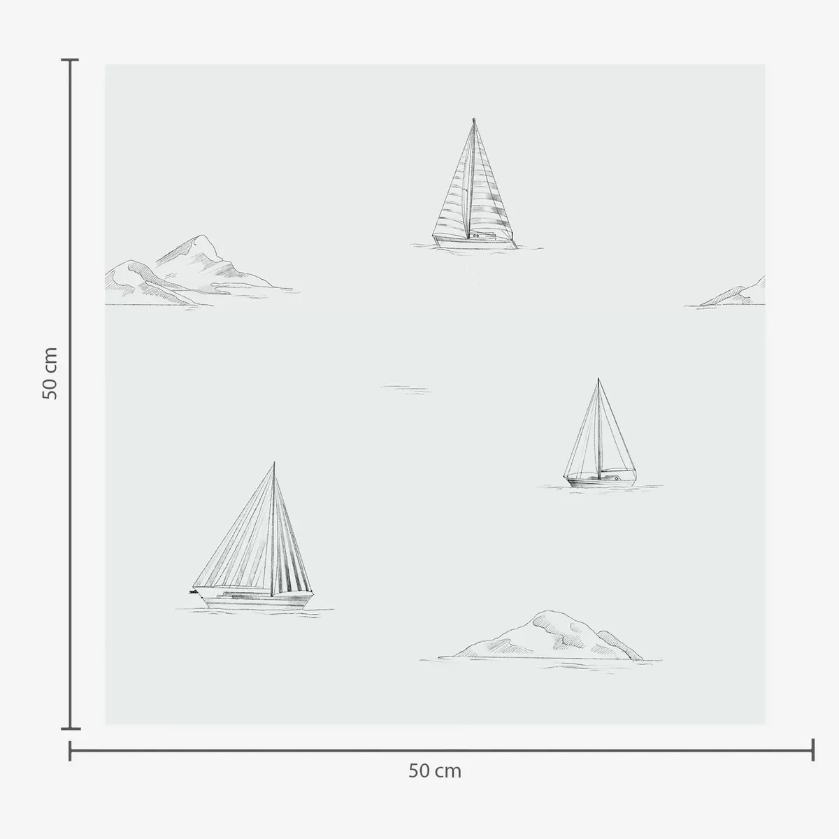 Behang Schets jachten en eilanden, koele blauwgrijze achtergrond Nr. a00654