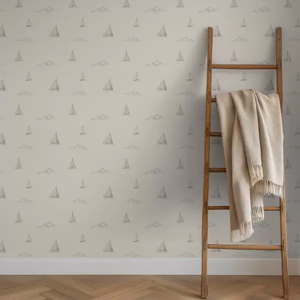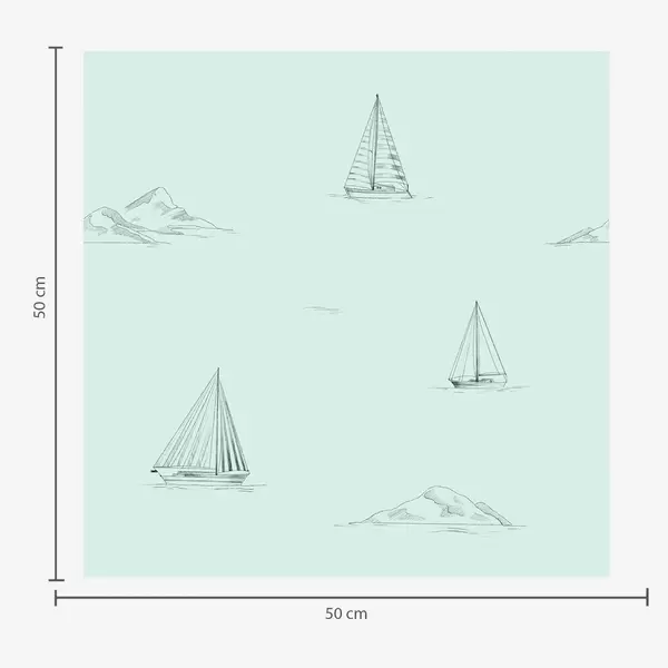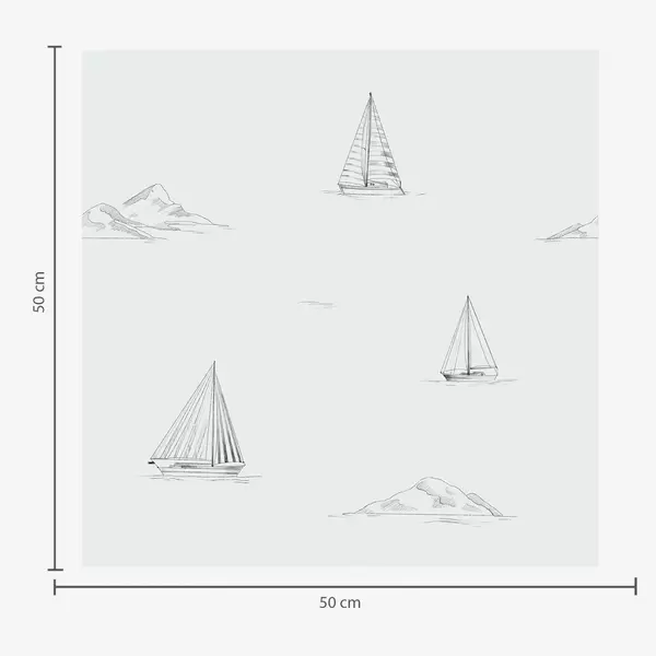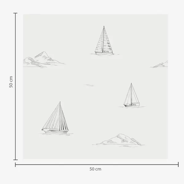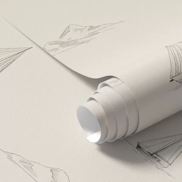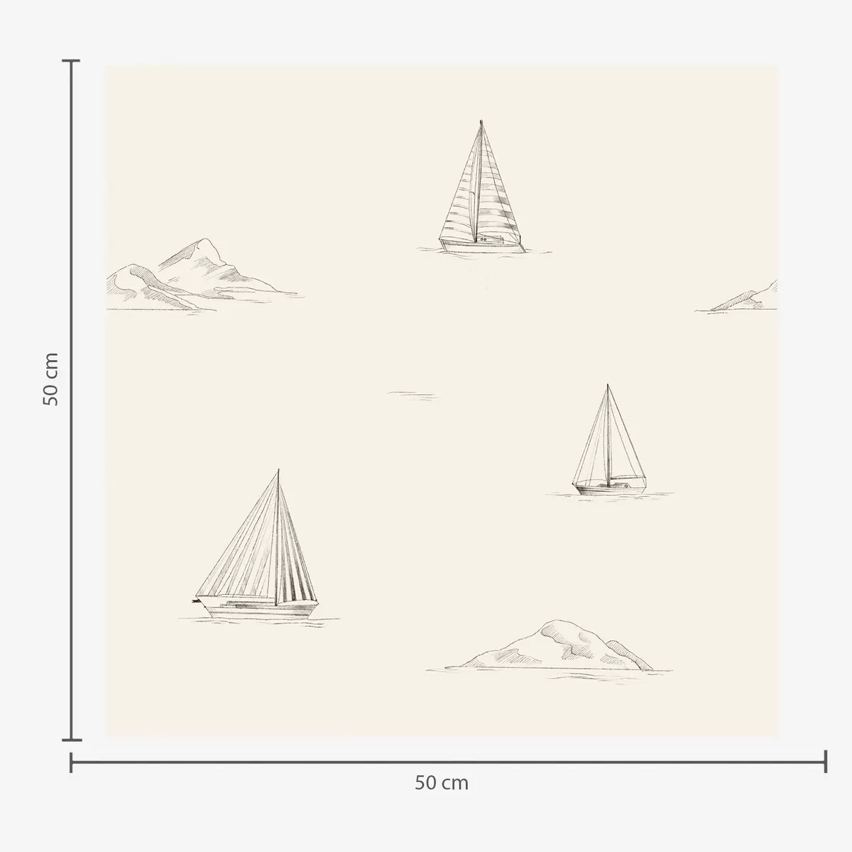 Behang Schets van jachten en eilanden, warme crèmekleurige achtergrond Nr. a00654v1