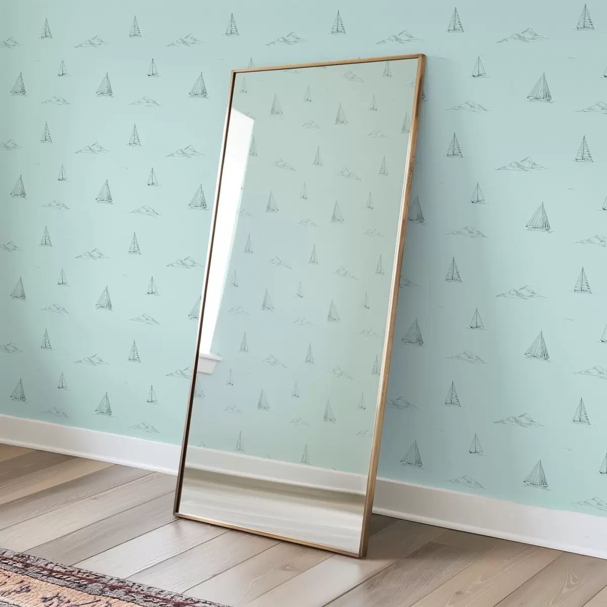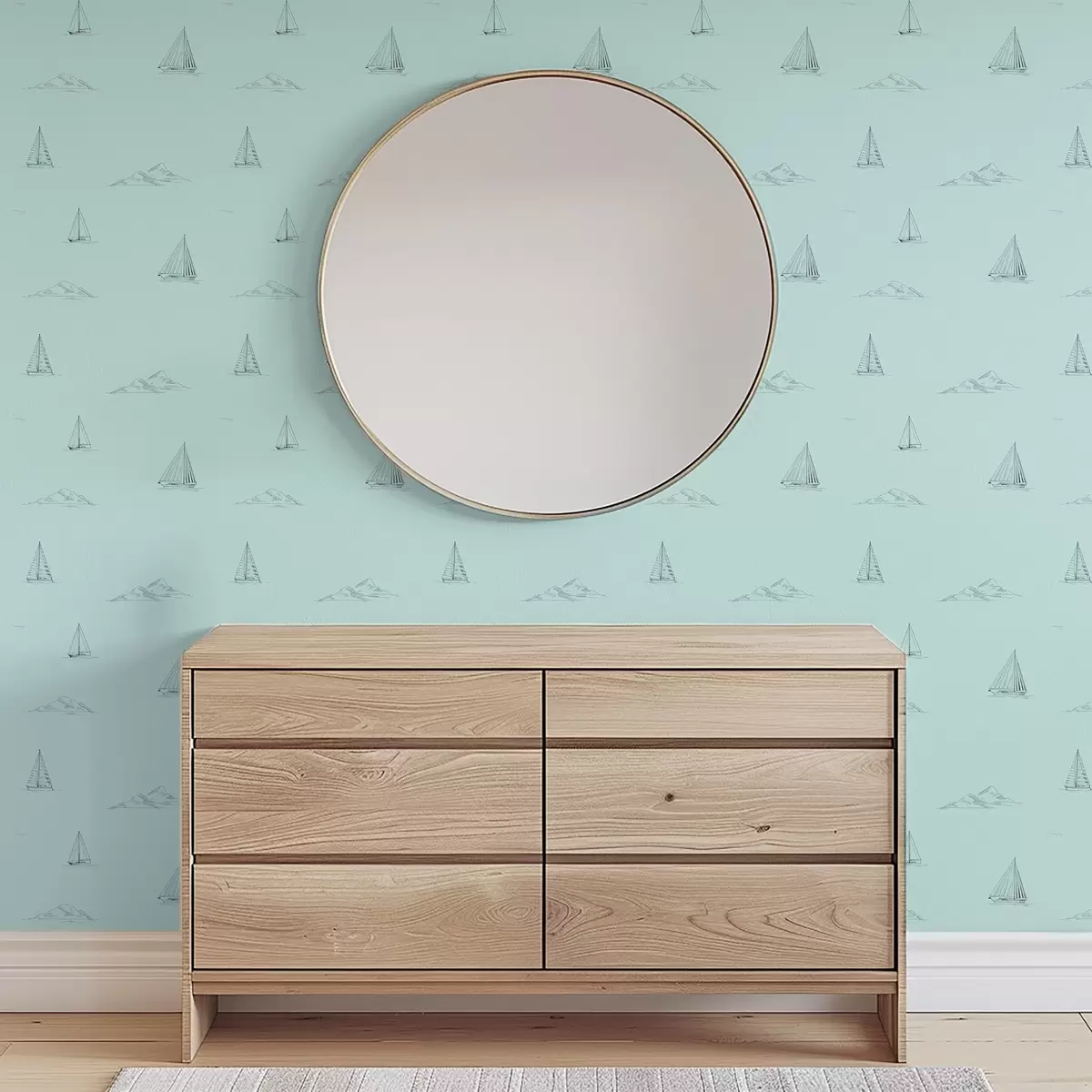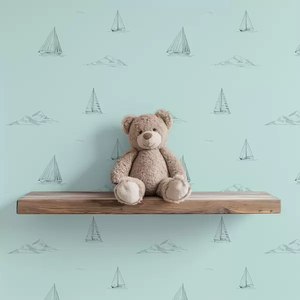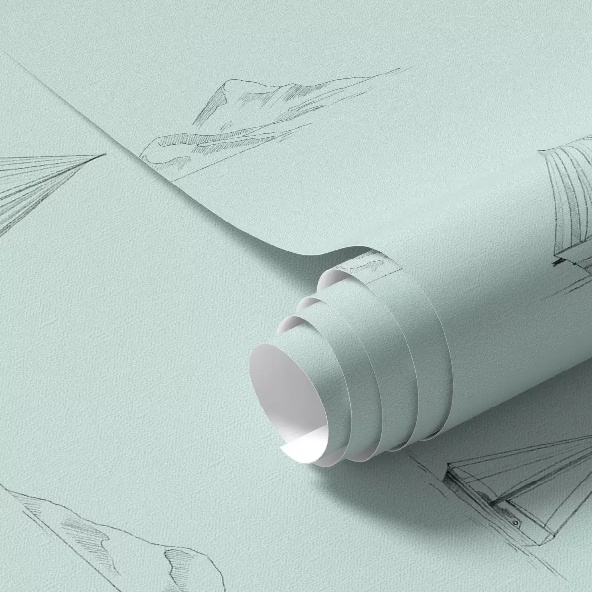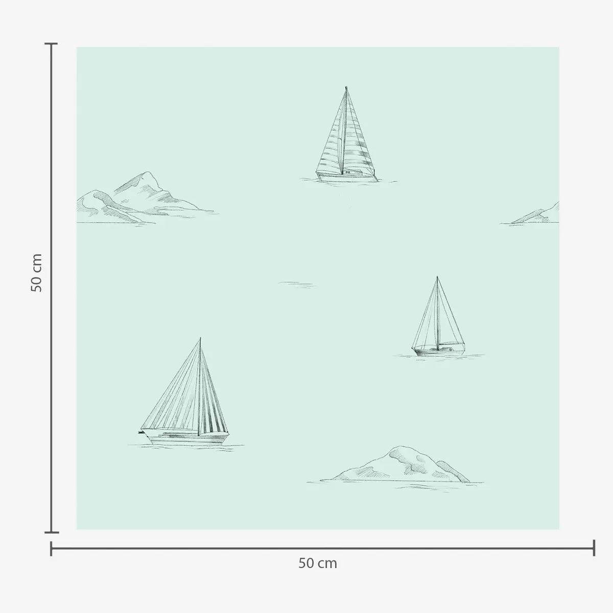Behang Schets jachten en eilanden, mintgroene achtergrond Nr. a00654v4