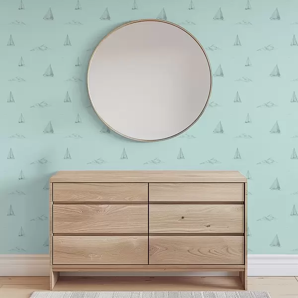 Behang Schets jachten en eilanden, mintgroene achtergrond Nr. a00654v4