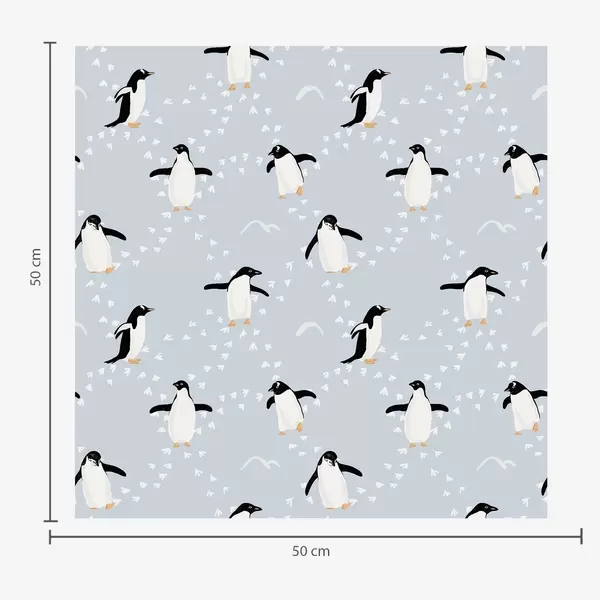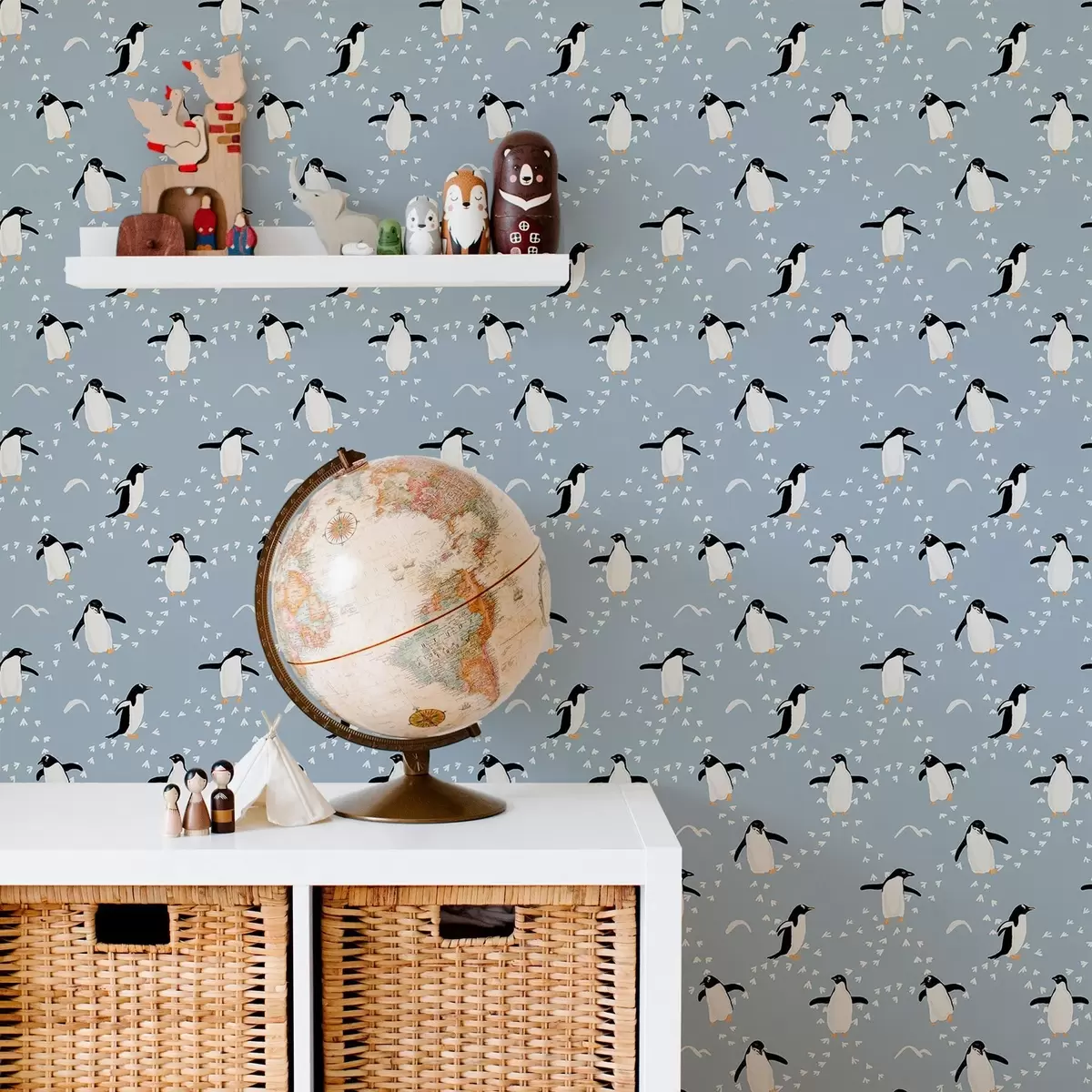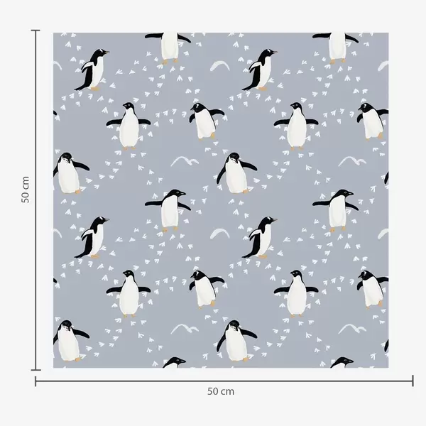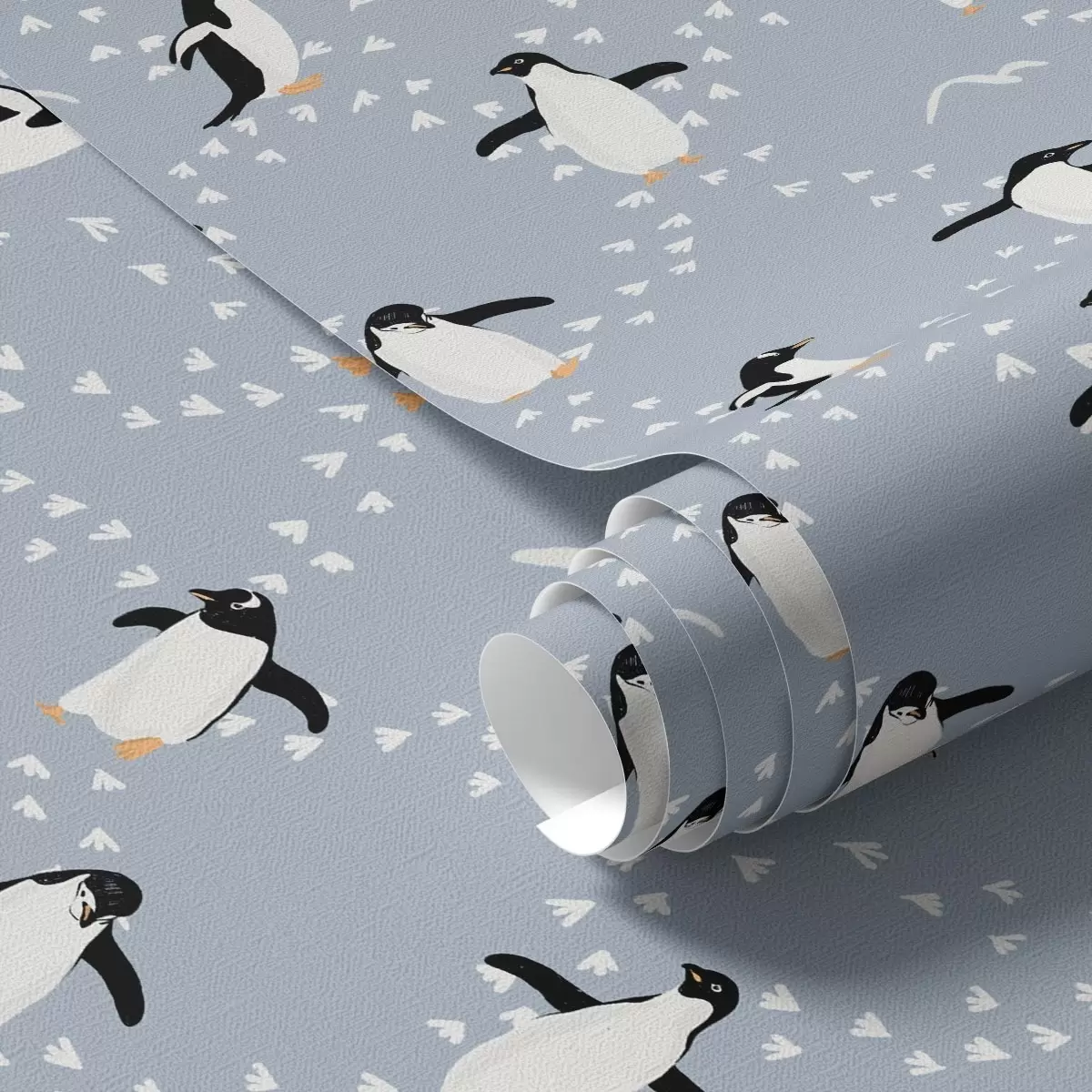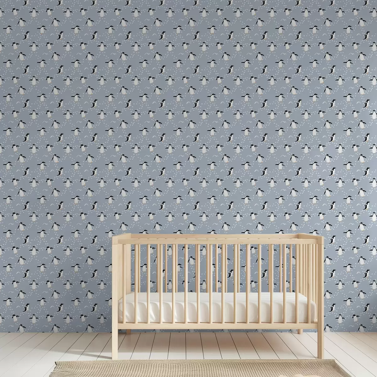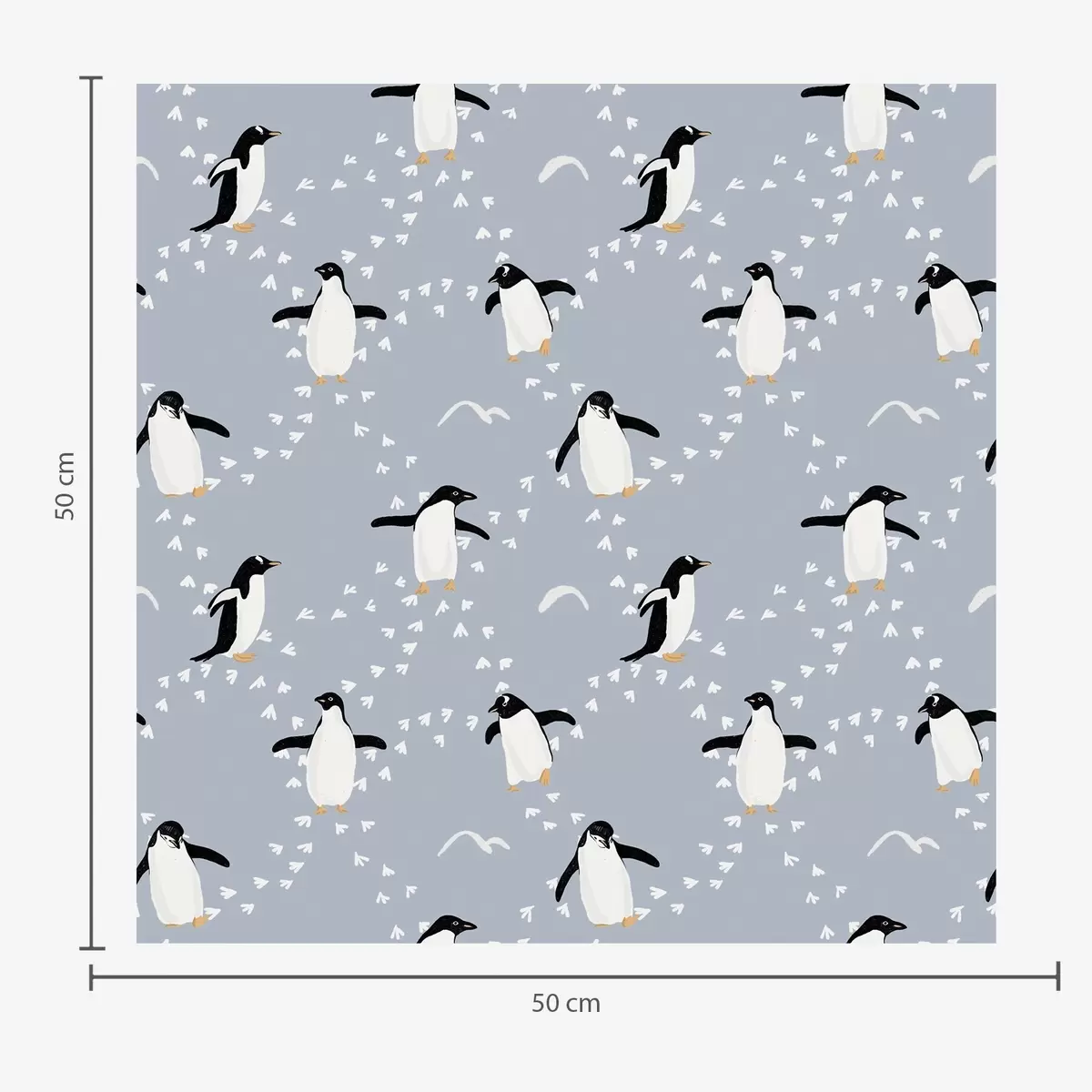 Behang Pinguïns op grijsblauw met voetafdrukken Nr. a00655