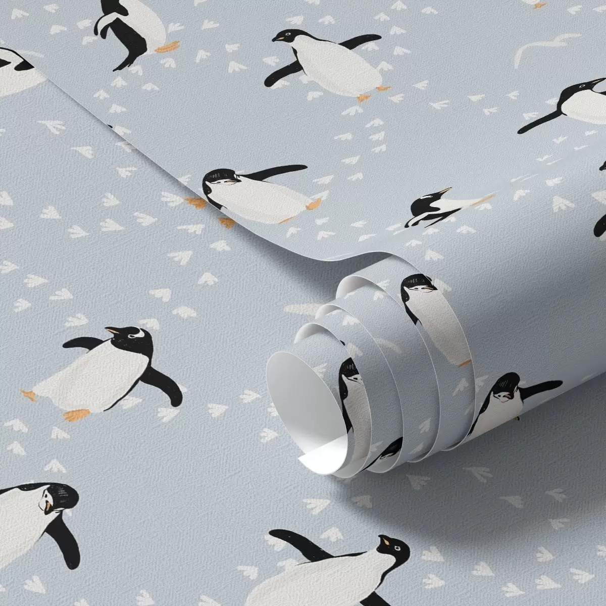 Behang Pinguïns op lichtblauw, ritme van voetafdrukken Nr. a00655v2