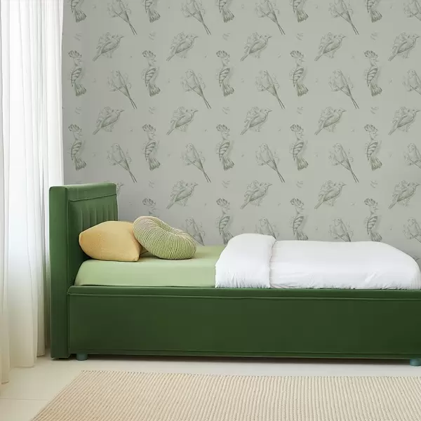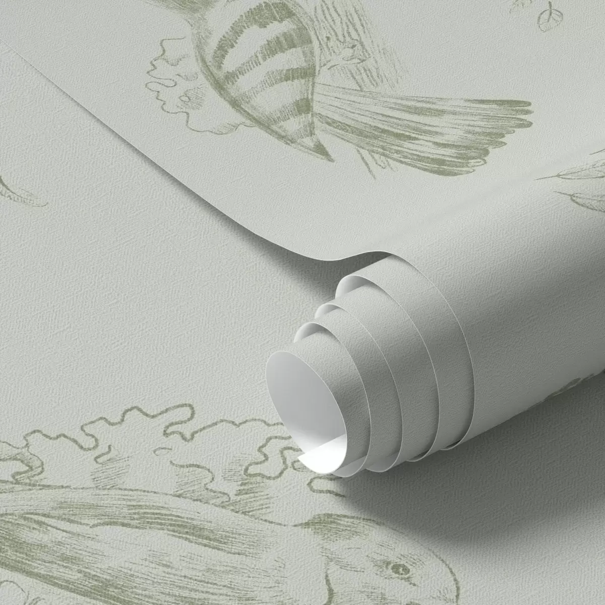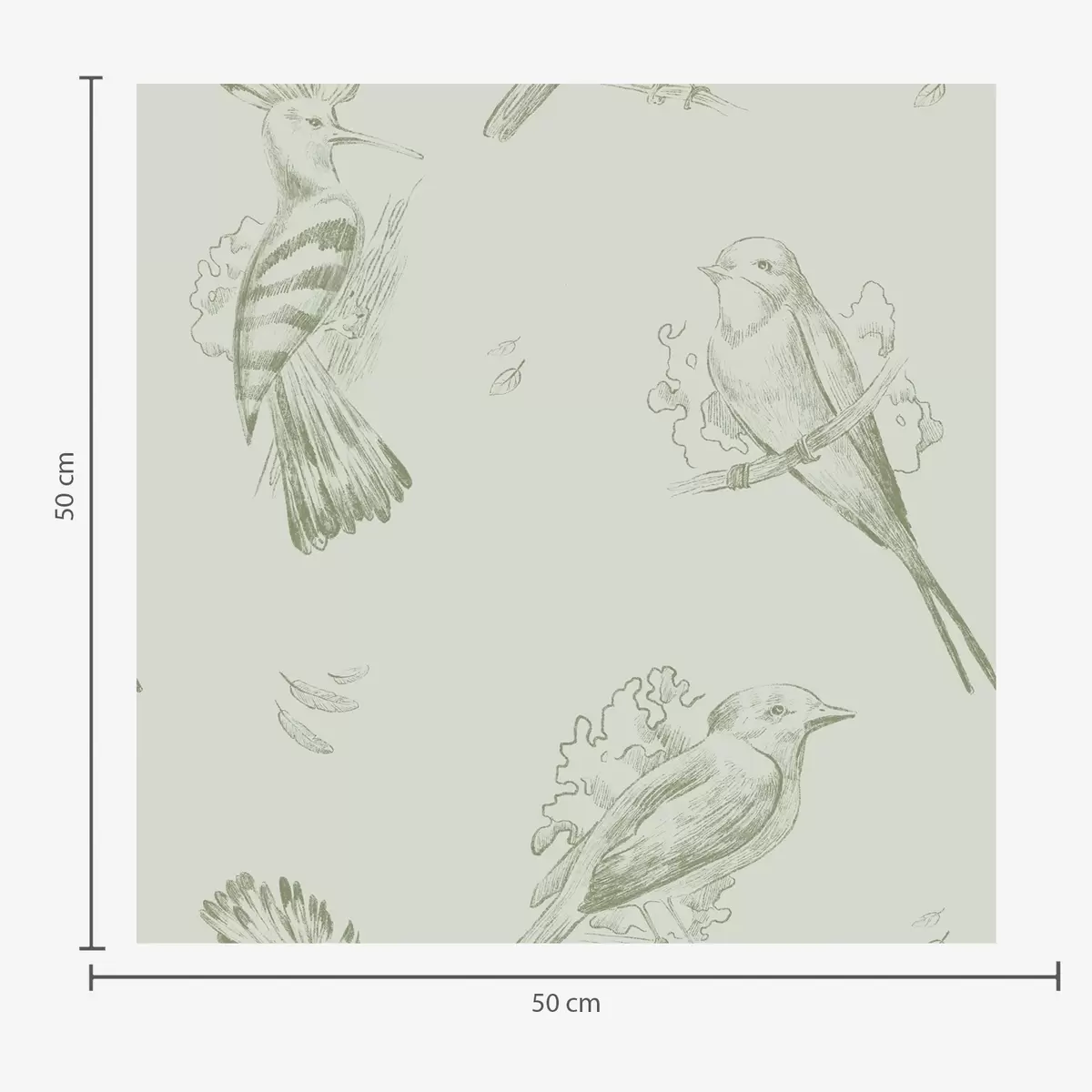 Behang Vogeltoile: schetsvogels op grijsgroene achtergrond Nr. a00656v1