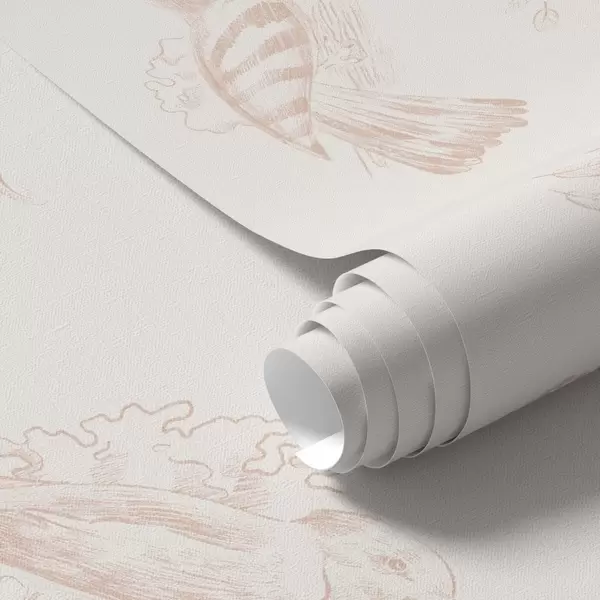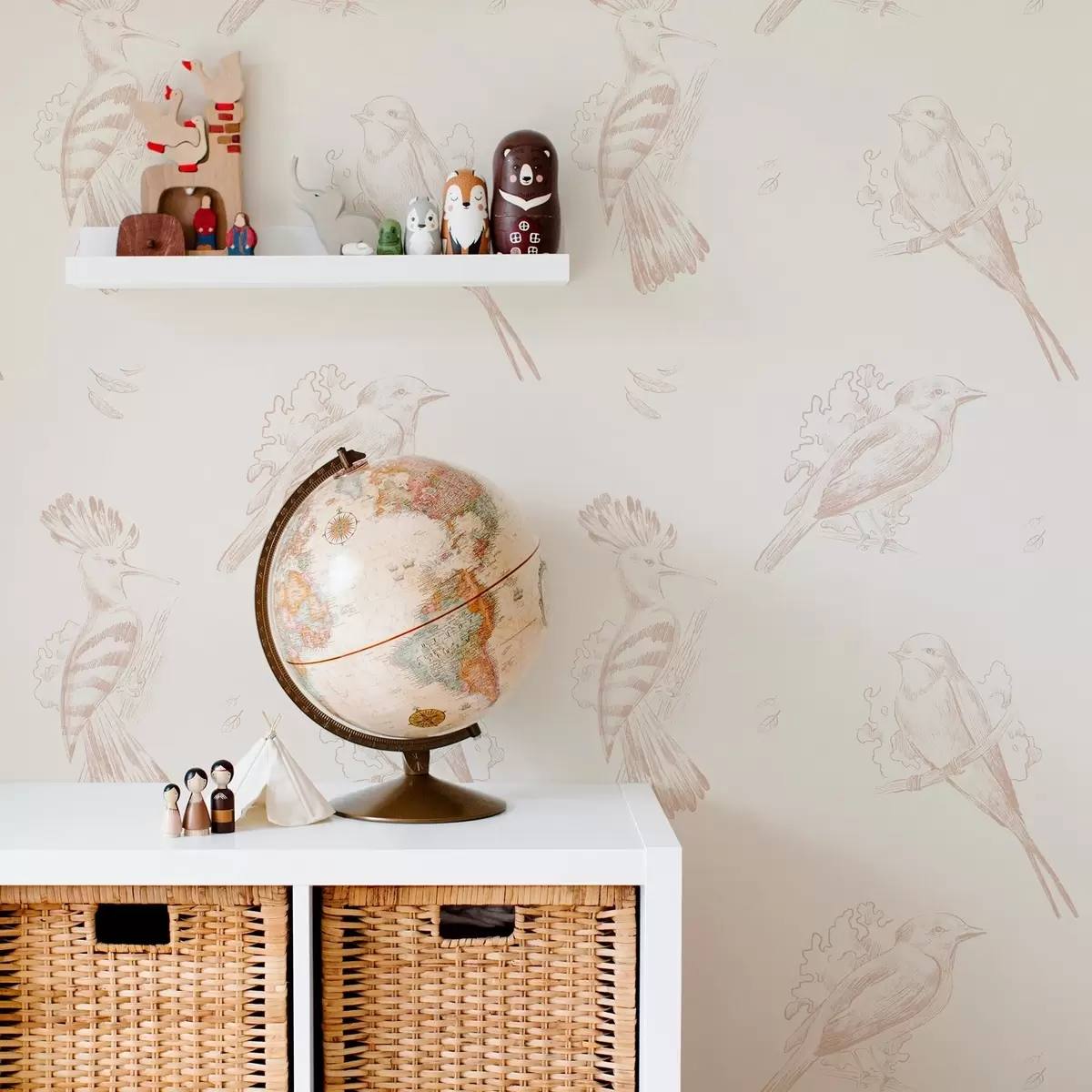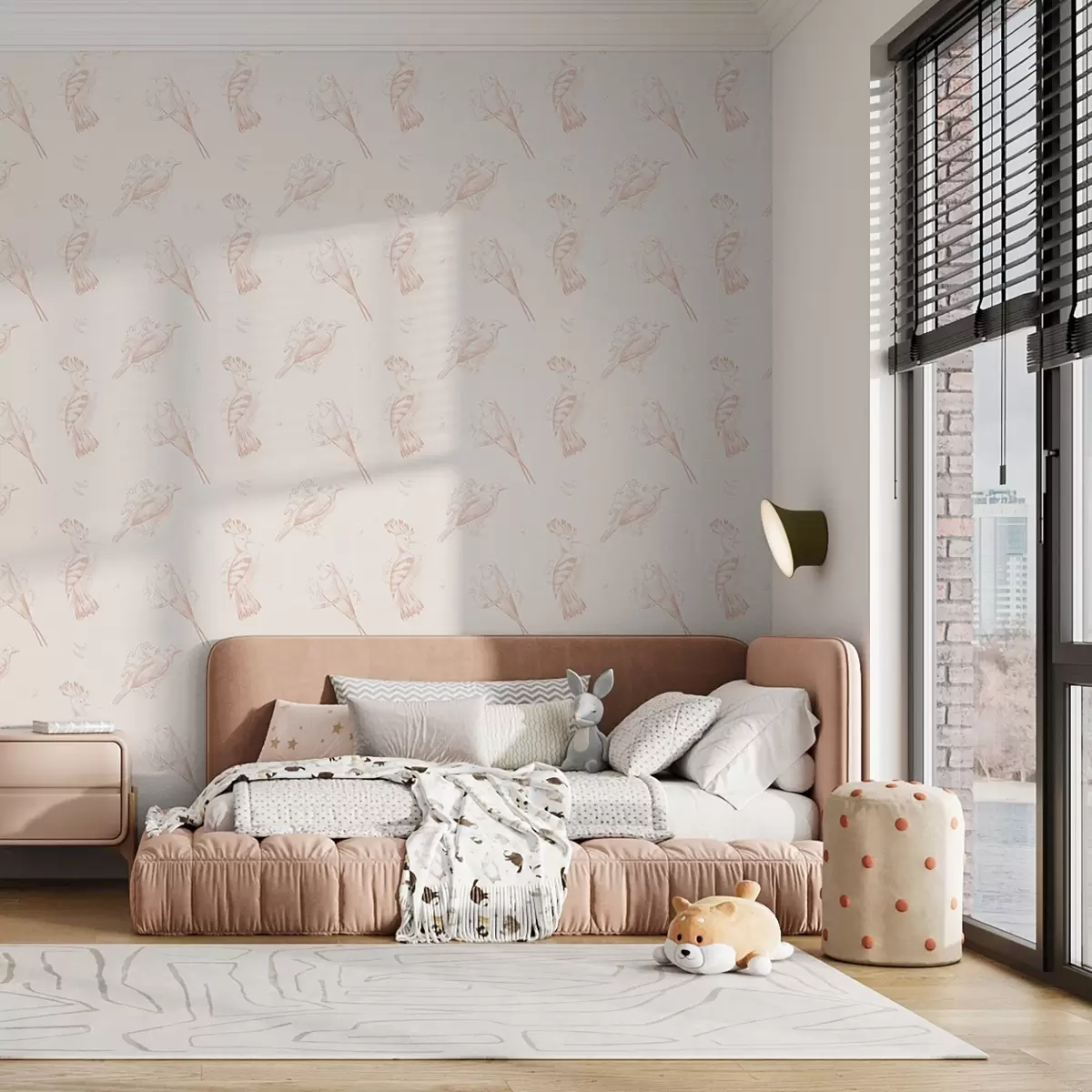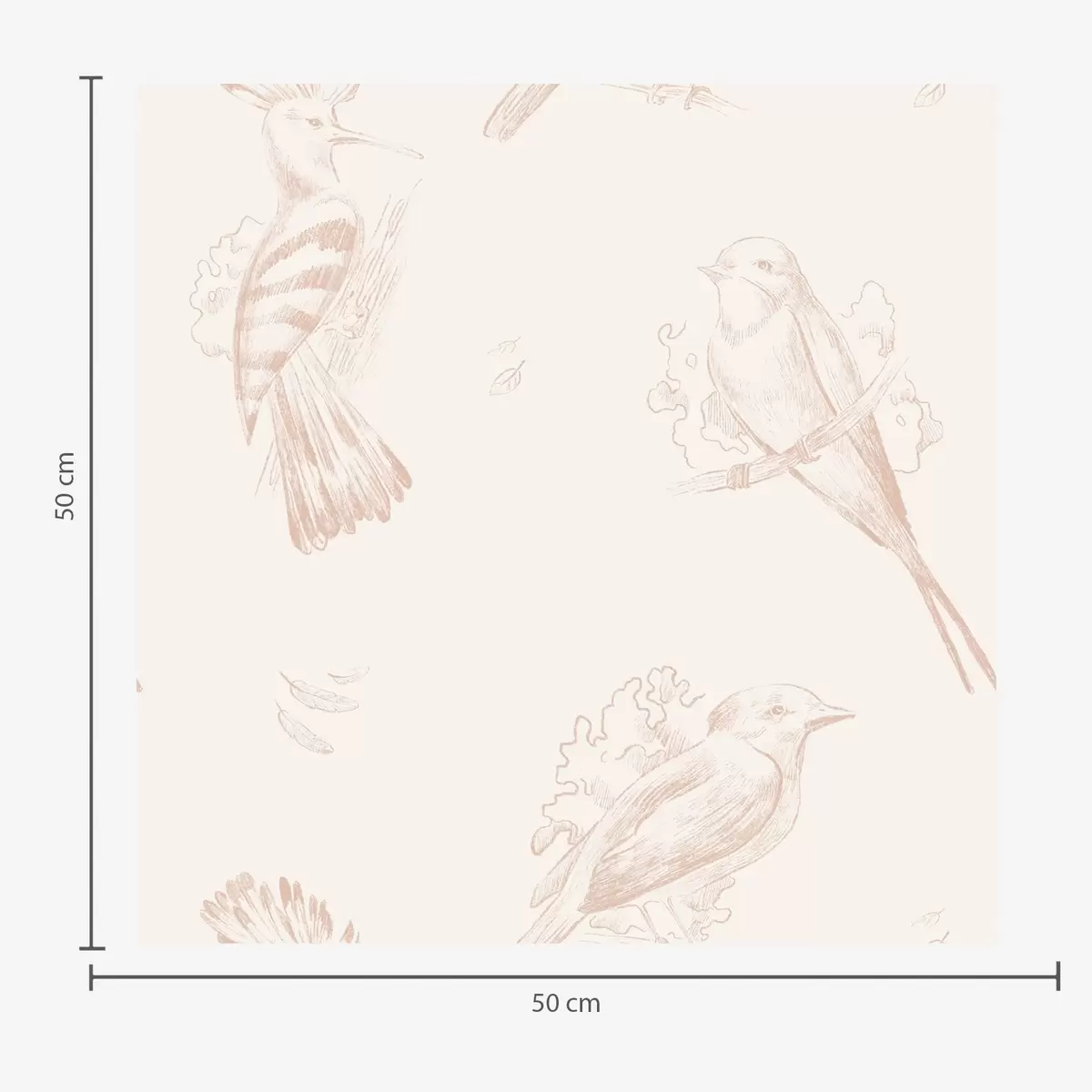 Behang Vogeltoile: schets vogels op perzik-crème Nr. a00656v2
