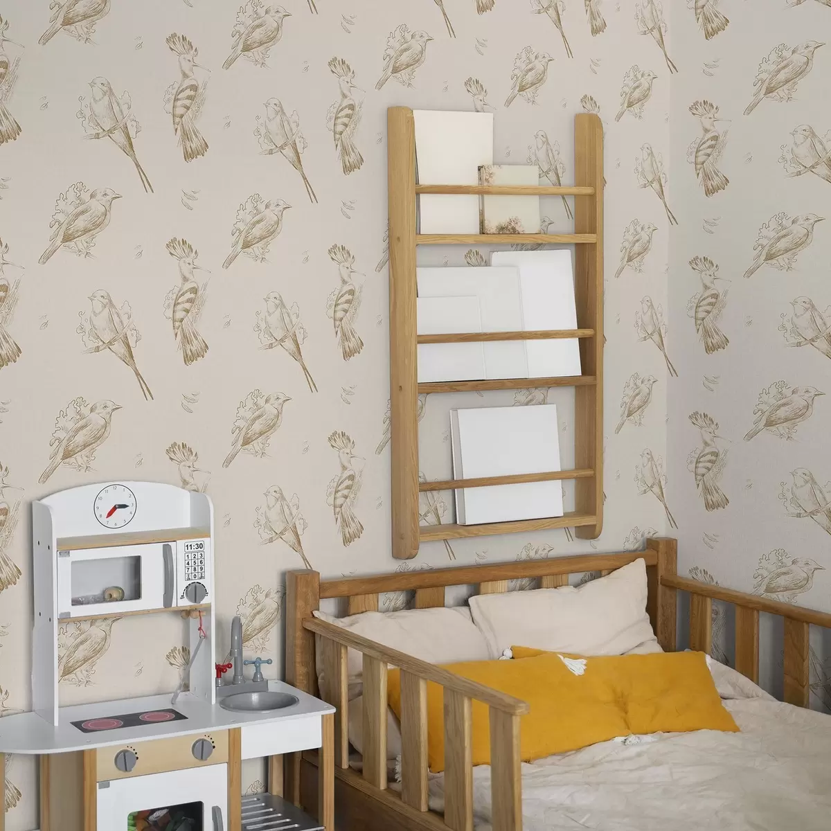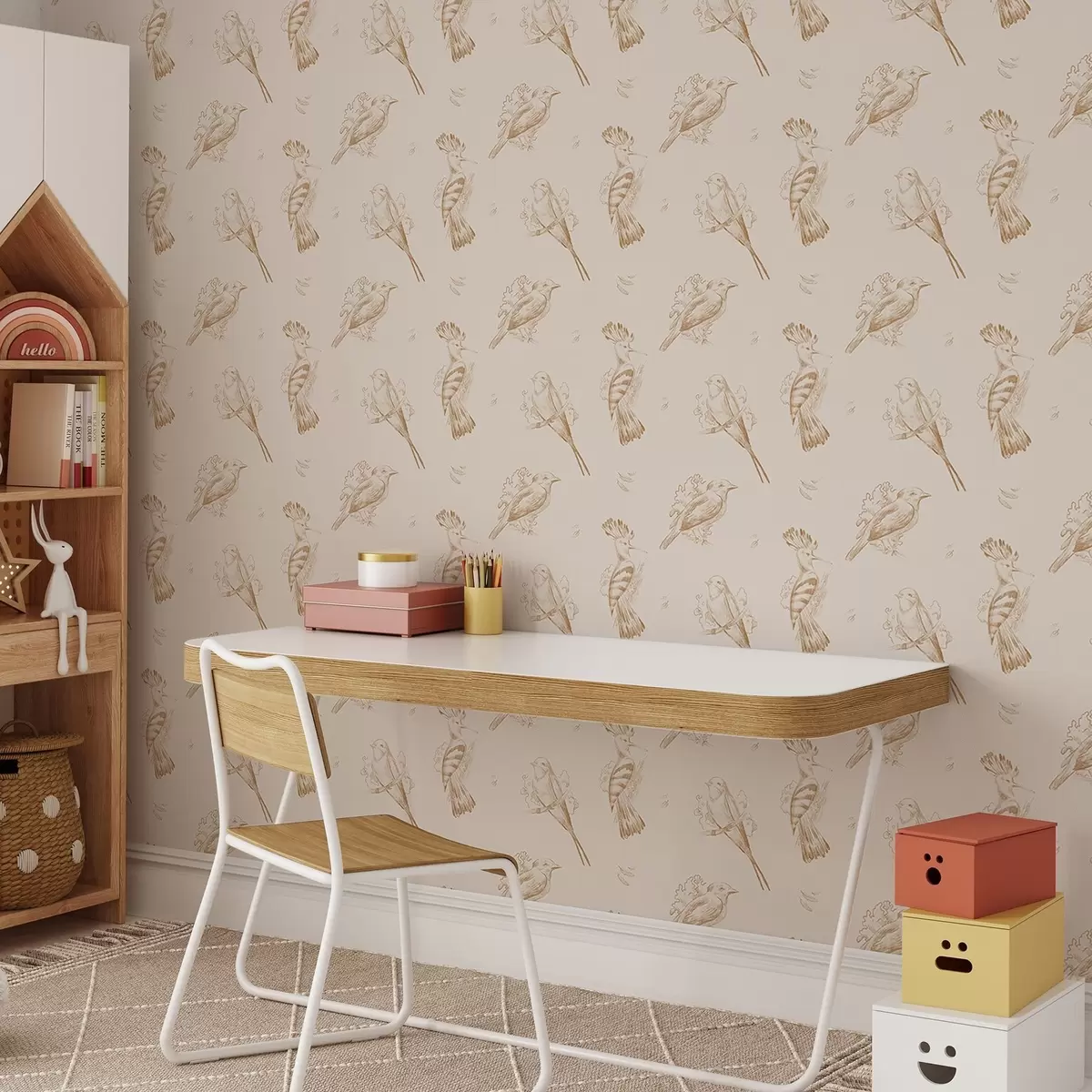 Behang Vogeltoile: schets vogels op warm beige Nr. a00656v3