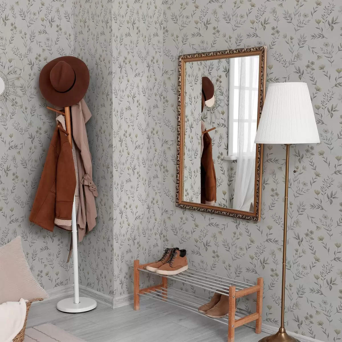 Behang Kleine waterverf takjes en bloemen op een lichte achtergrond Nr. a00665