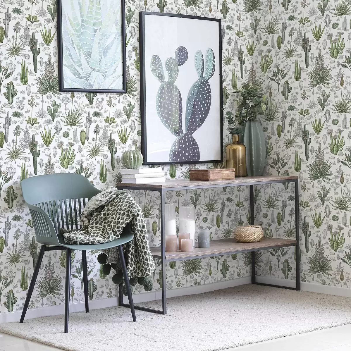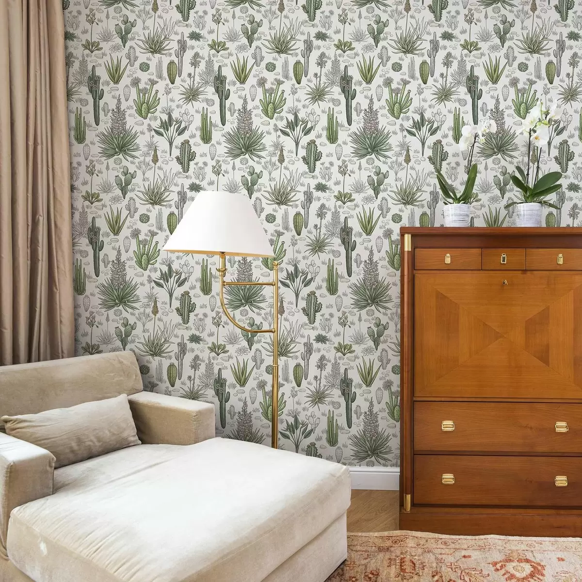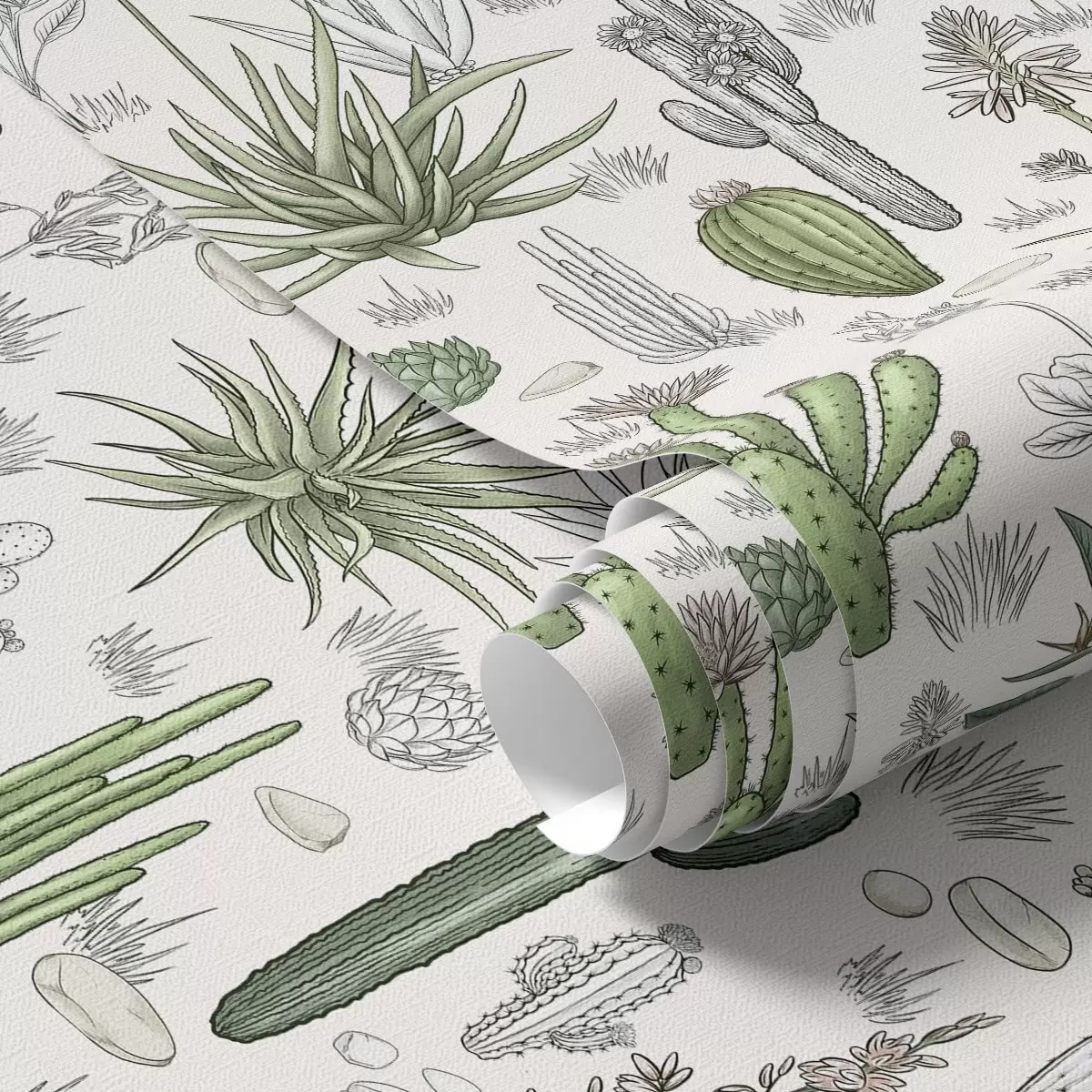 Behang Cactussen en vetplanten op een lichte achtergrond, lineaire stijl Nr. a00666v1