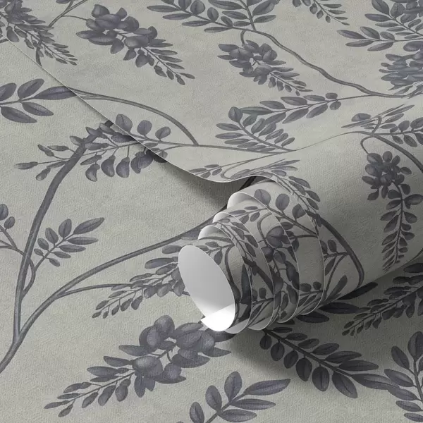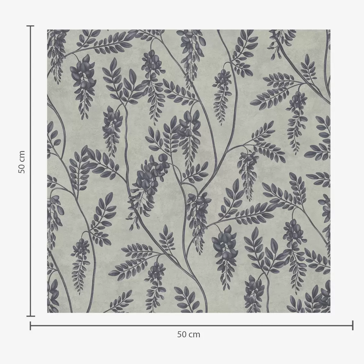 Behang Takken met donkere bloemen op een grijs-beige achtergrond Nr. a00672