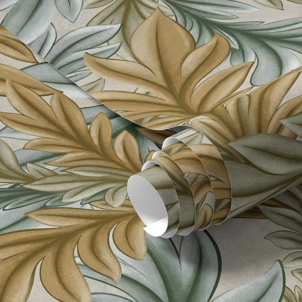 Behang Decoratief blad in een warm oker- en groenpalet Nr. a00673