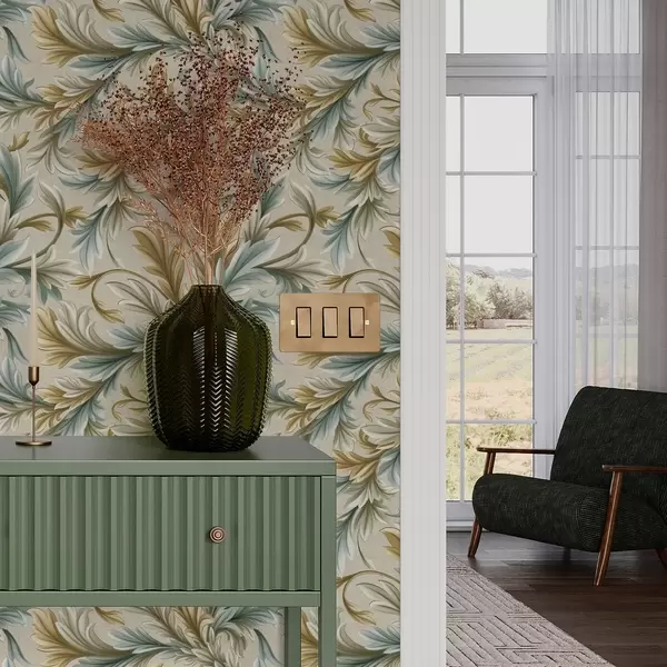 Behang Volumineuze bladeren in pasteltinten van groen en beige Nr. a00674