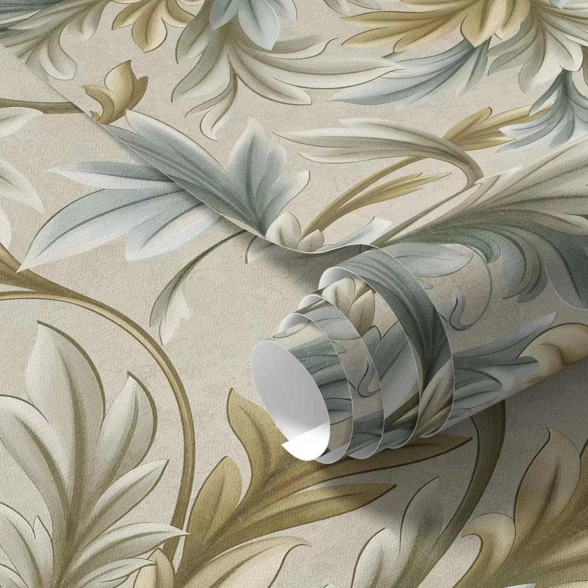 Behang Volumineuze bladeren in pasteltinten van groen en beige Nr. a00674