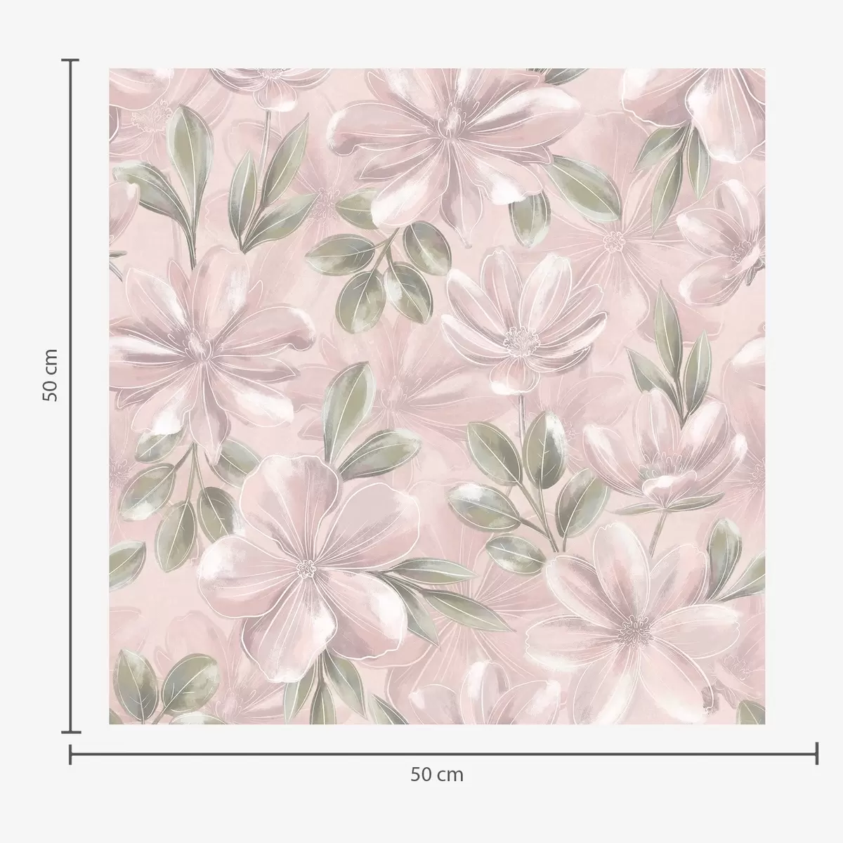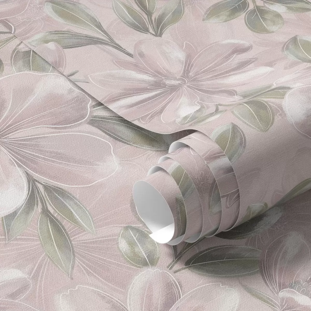 Behang Roze bloemen met delicate bladeren op een zachte achtergrond Nr. a00675