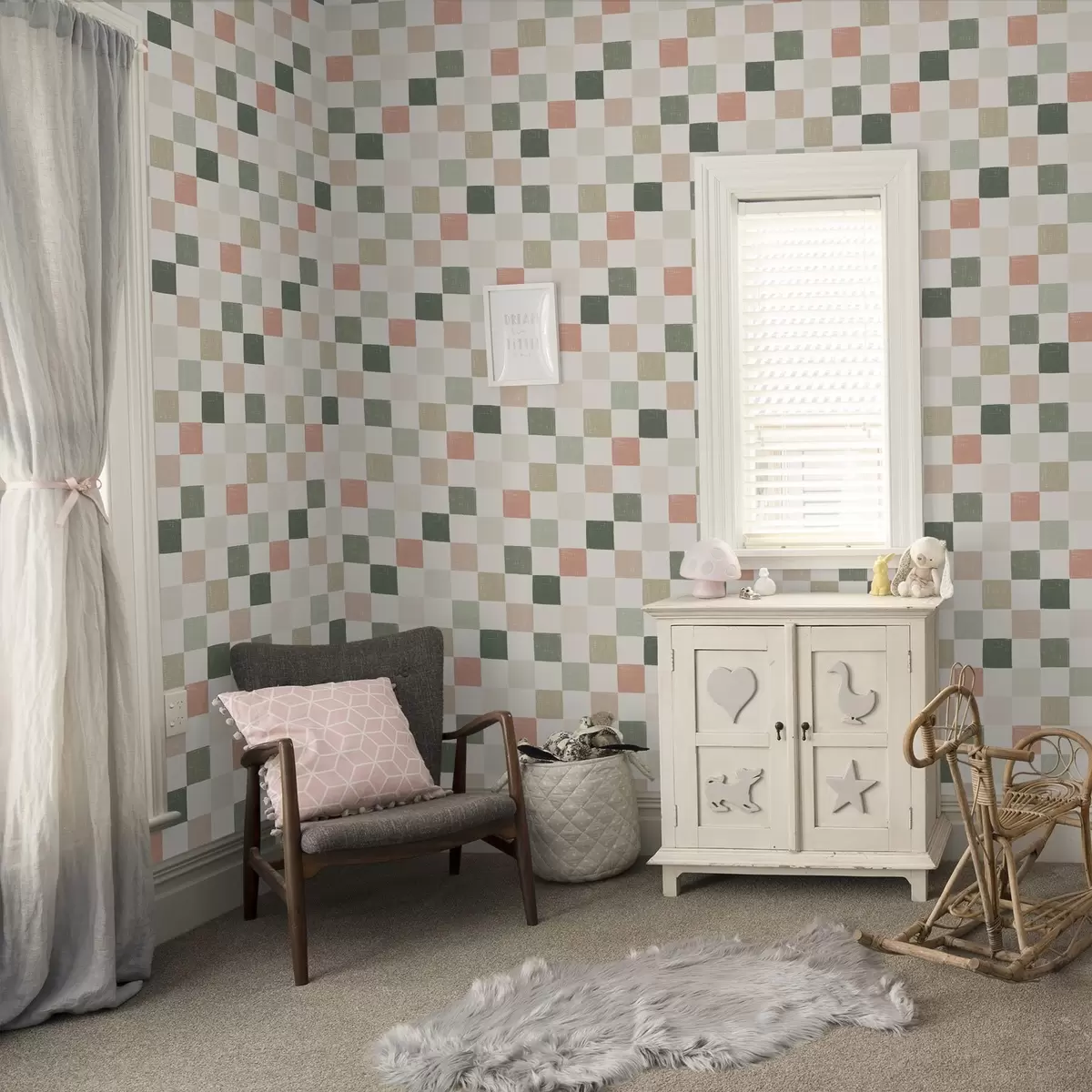 Behang Zachte plaid in pastelgroen, roze en beige tinten Nr. a00676
