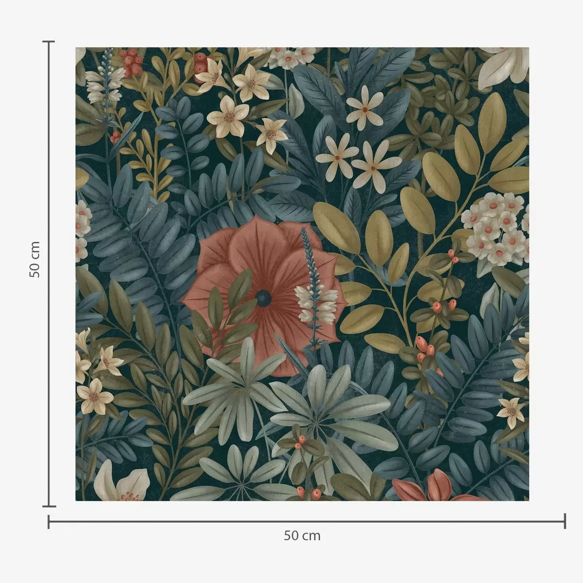 Behang Donkere achtergrond met dichte bloemen en bladeren in warme tinten Nr. a00678