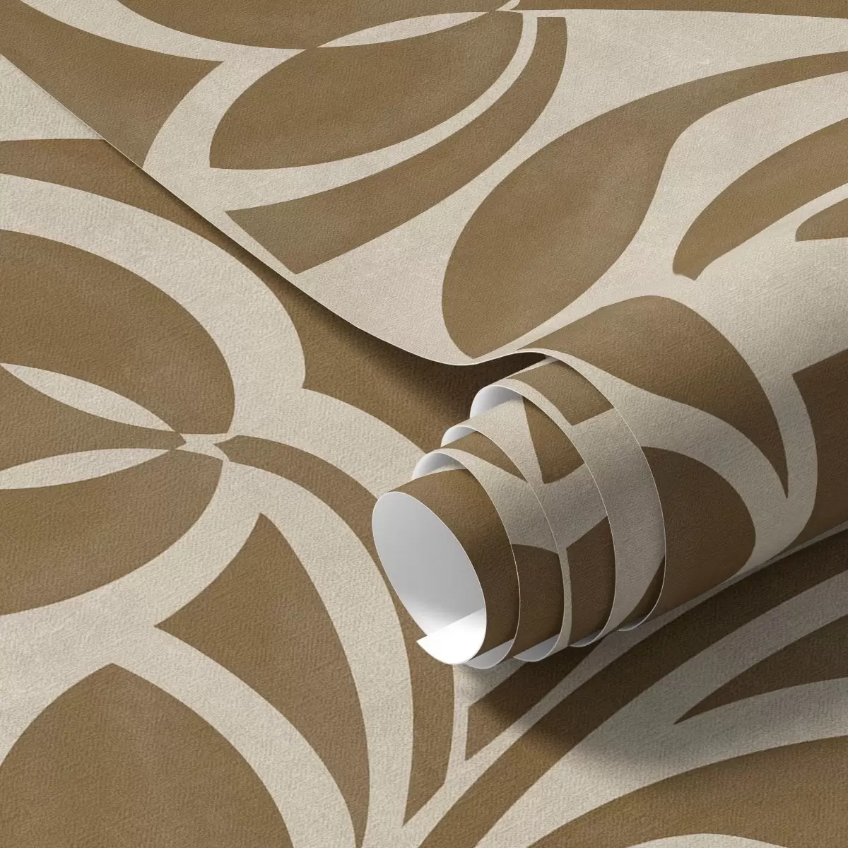 Behang Geometrische bladsilhouetten, karamelbruin op beige Nr. a00679