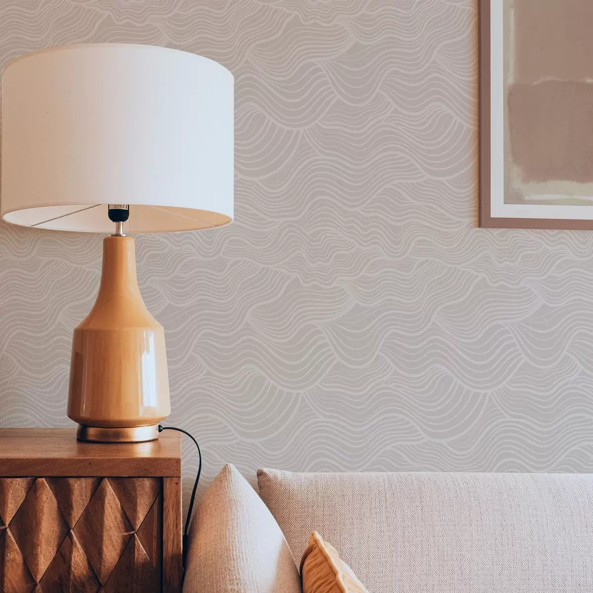 Behang Tone-on-tone golvende lijnen op warm beige Nr. a00681v1